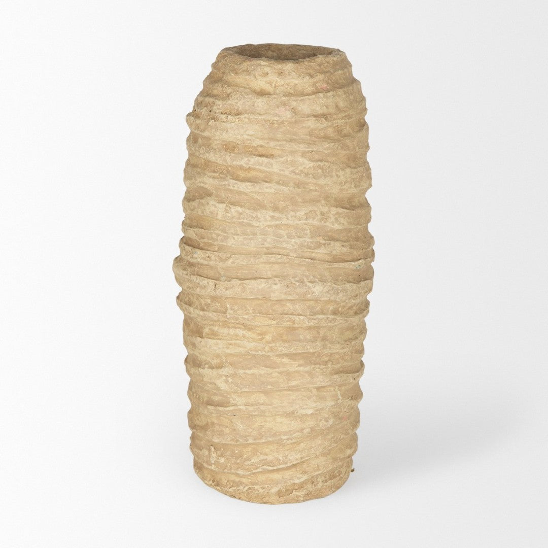 Elevate your interior with this artisanal beige paper-mâché vase—an elegant, eco-conscious accent handmade from upcycled materials. Each Kamli vase is individually crafted by skilled artisans, so no two pieces are identical; subtle variations in color, texture, and form deliver a distinctive, organic look that complements modern, boho, and rustic decor.
