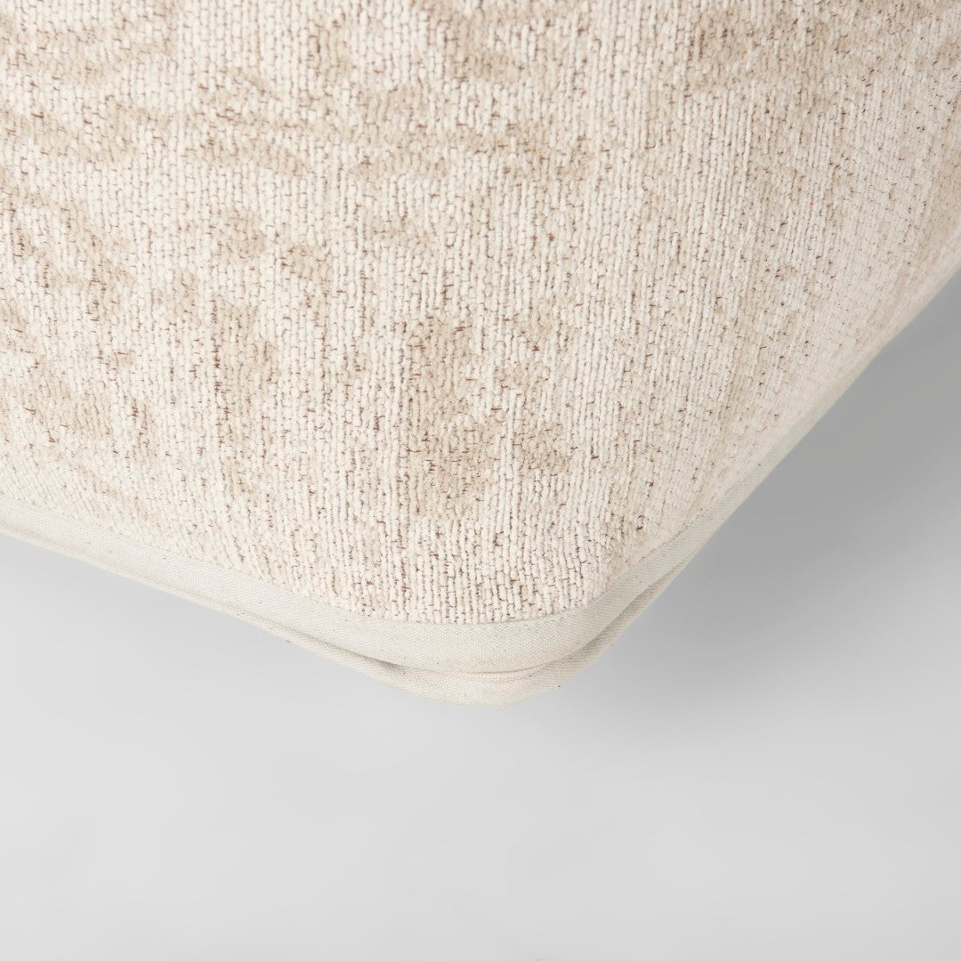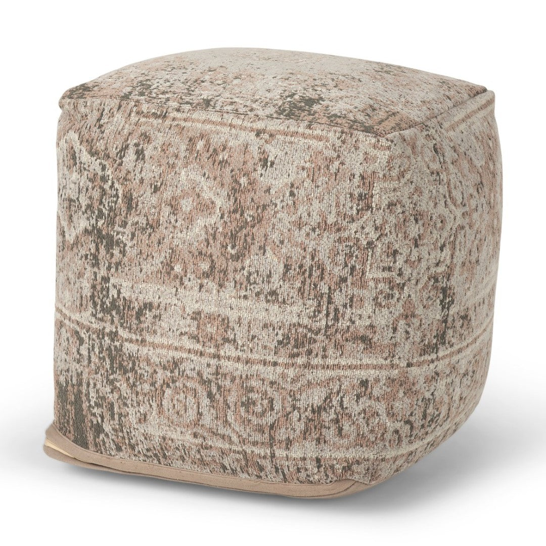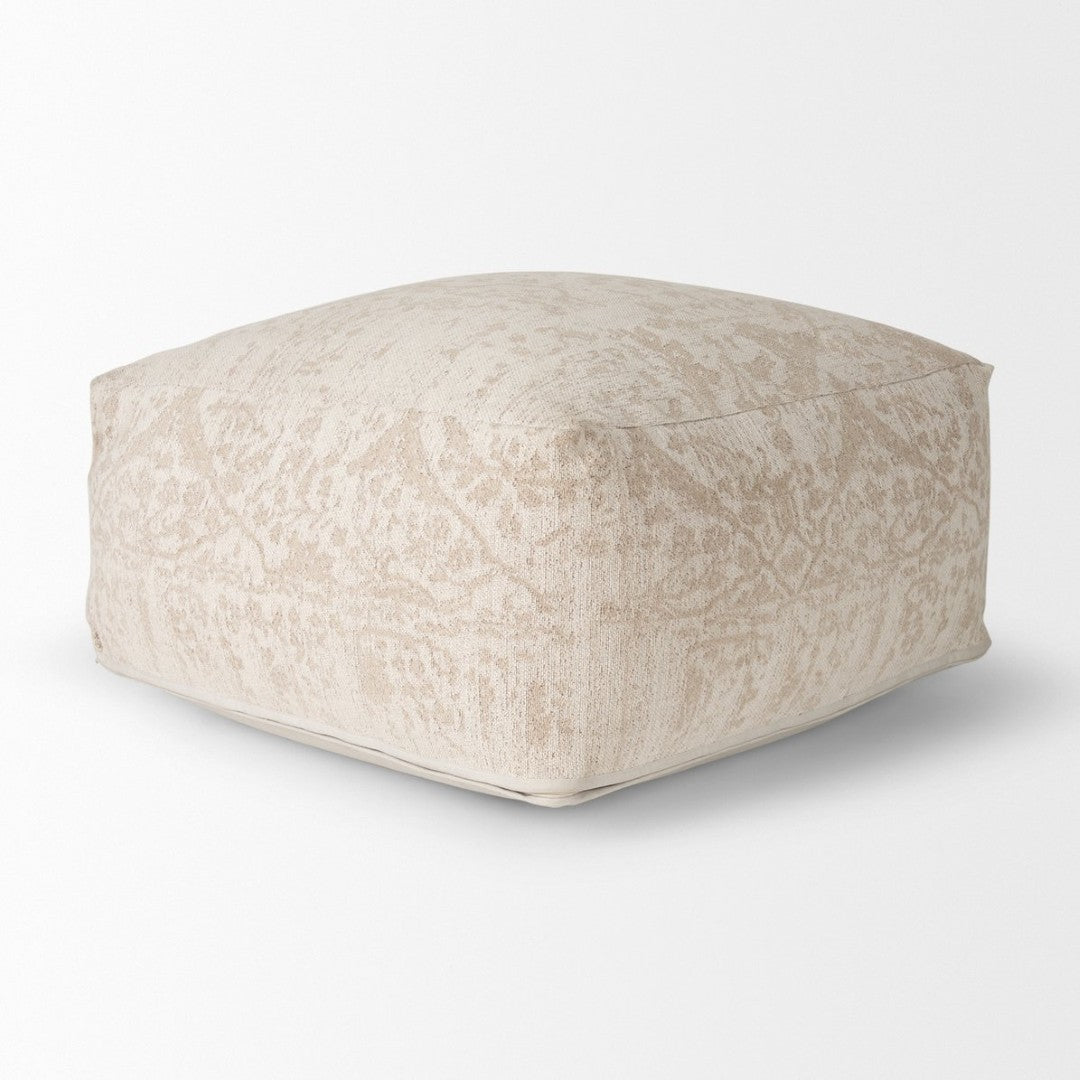 Add a touch of understated elegance and extra seating to any room with this versatile rectangular pouf. Its rug-inspired jacquard pattern in soft cream tones and plush cotton-chenille texture create a refined accent piece that doubles as a footrest, extra seat, or decorative element.