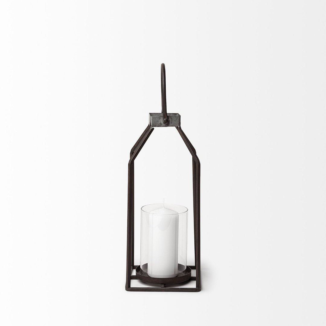 Add warm, rustic charm to your home with this elegant metal-framed candle holder. Its clean lines, glass votive, and distressed black finish suit industrial, farmhouse, and contemporary interiors, while the versatile design lets you hang it or set it on a table or shelf to create inviting ambient lighting.