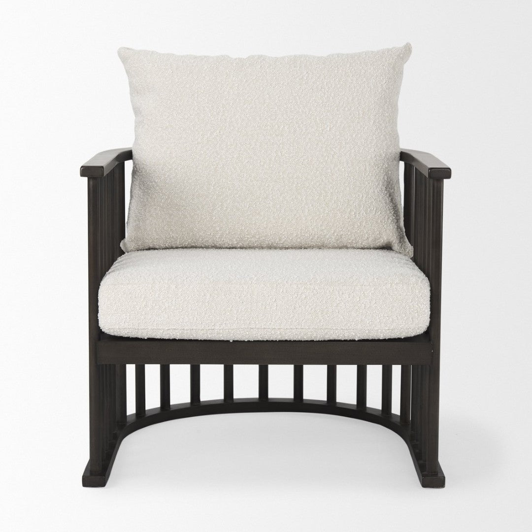 Bring warmth and modern elegance to your living room, bedroom, or office with this Kopari accent chair. Upholstered in a soft beige tweed fabric and supported by a warm light-brown solid wood frame, the chair blends comfort, durability, and clean contemporary lines for a versatile statement piece that complements a variety of interiors.