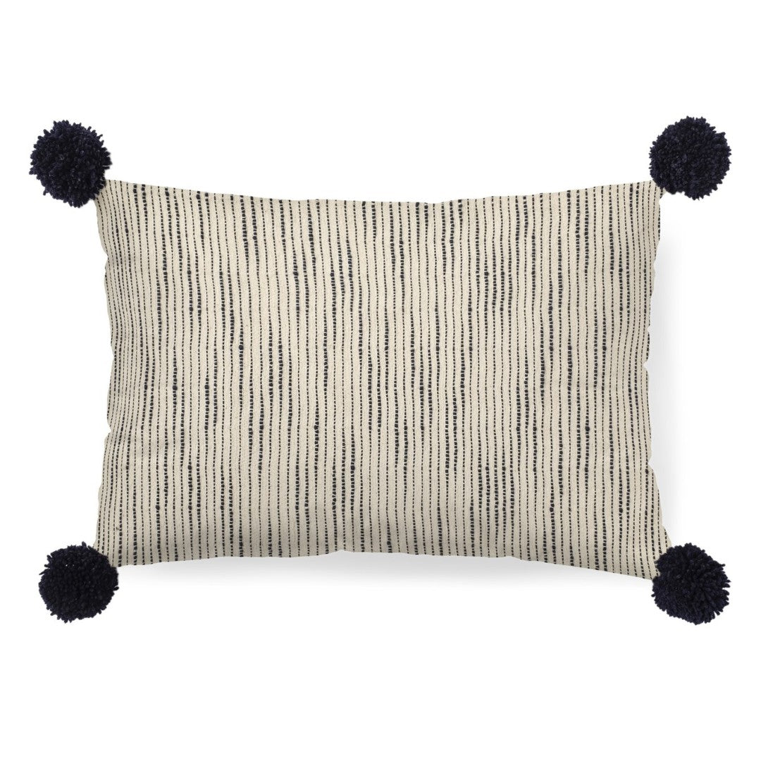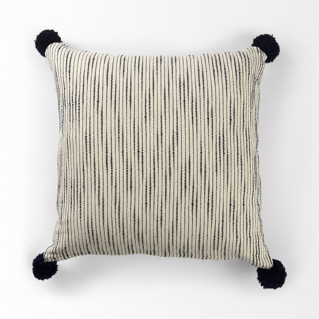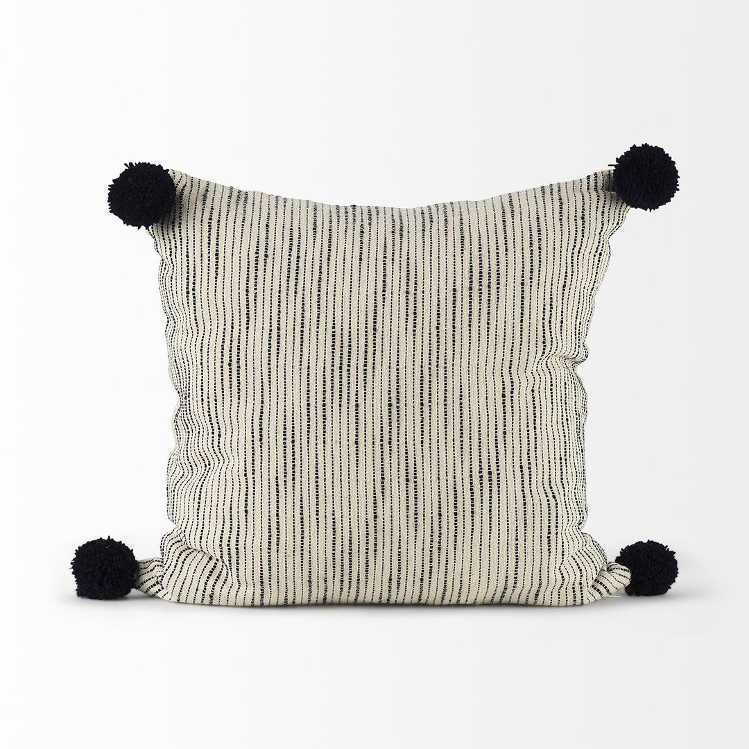 Bring a touch of modern-boho charm to your living space with this Krystal pom pom decorative pillow cover. Carefully crafted from soft fabric with playful blue pom pom accents on a cream ground, it adds texture, color, and a relaxed yet refined look to sofas, beds, and accent chairs. Easy to care for and ready to zip over a pillow insert, this cover updates your décor quickly without compromising on quality or style.