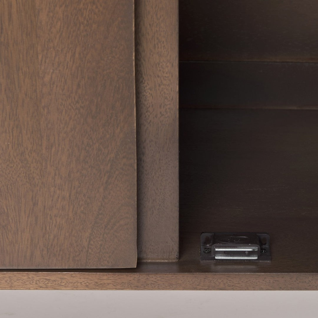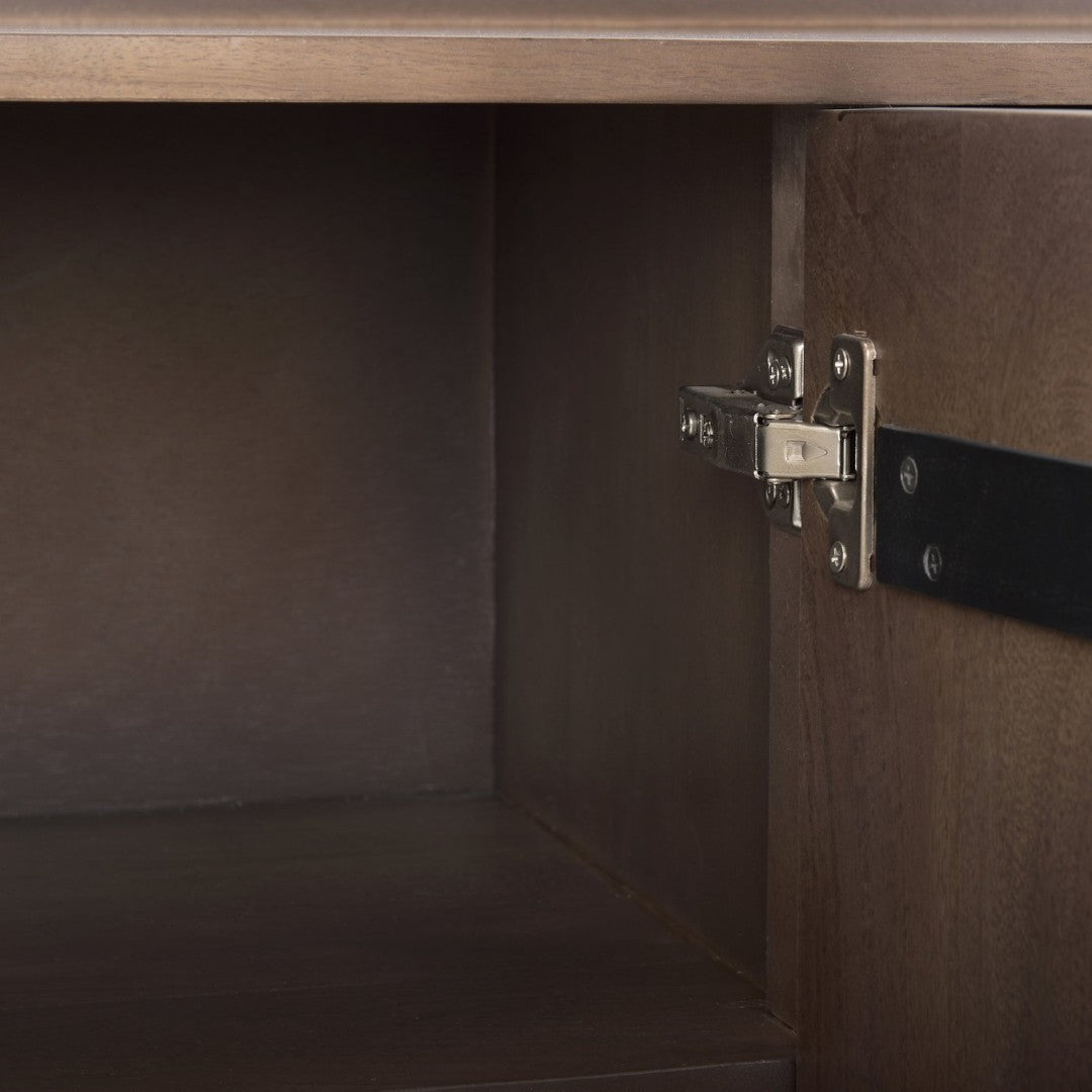 An elegant and versatile sideboard crafted from solid mango wood, this piece combines sturdy construction with clean, modern styling to enhance living rooms, dining areas, or office spaces. Its thoughtful layout provides generous storage while maintaining a sleek profile, and subtle details like cable access make it practical for media or console use.