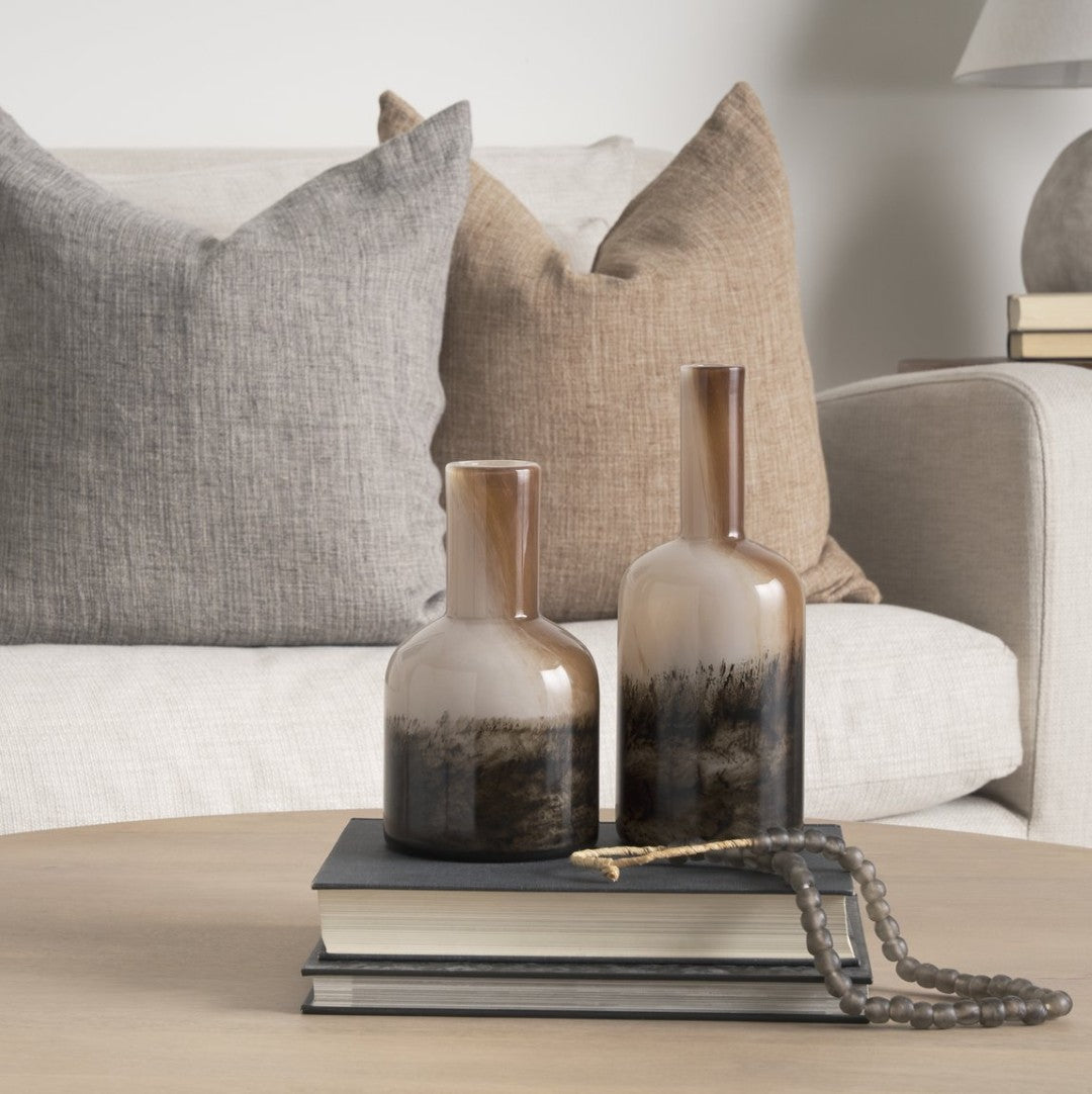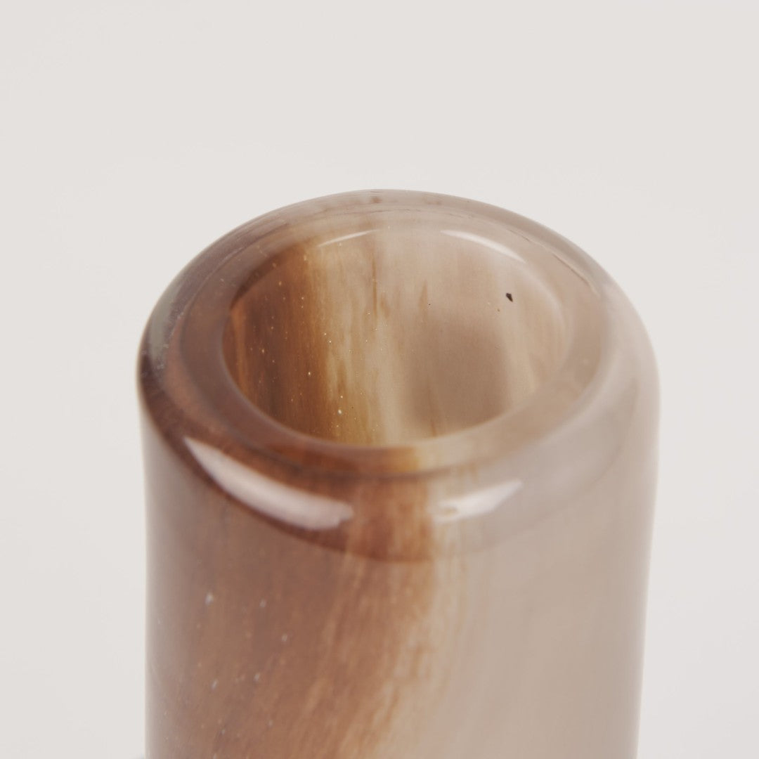 - The swirls of brown and cream in the glass give this vase a one-of-a-kind feel. Please expect variation in the colors and pattern.