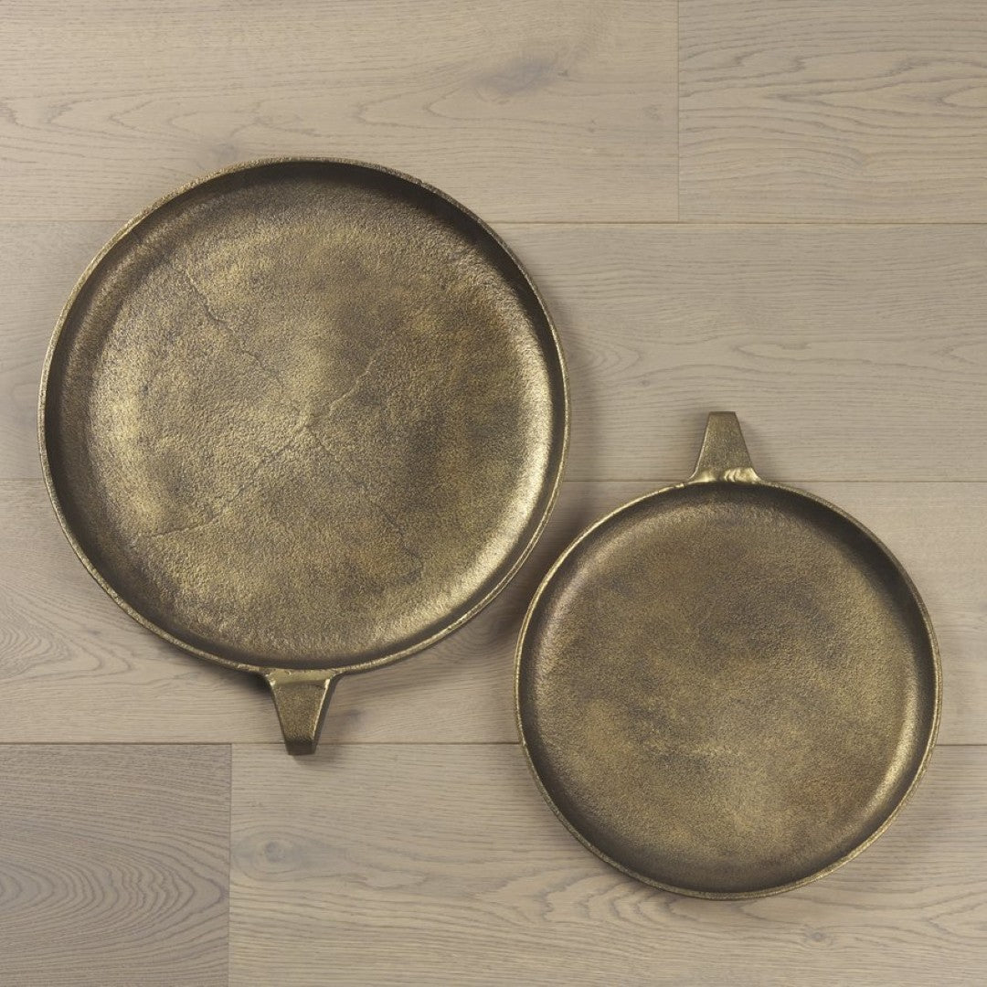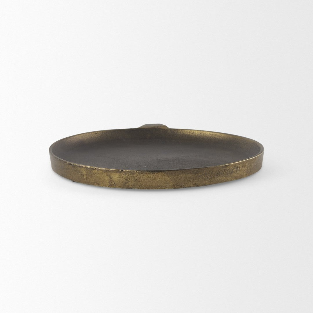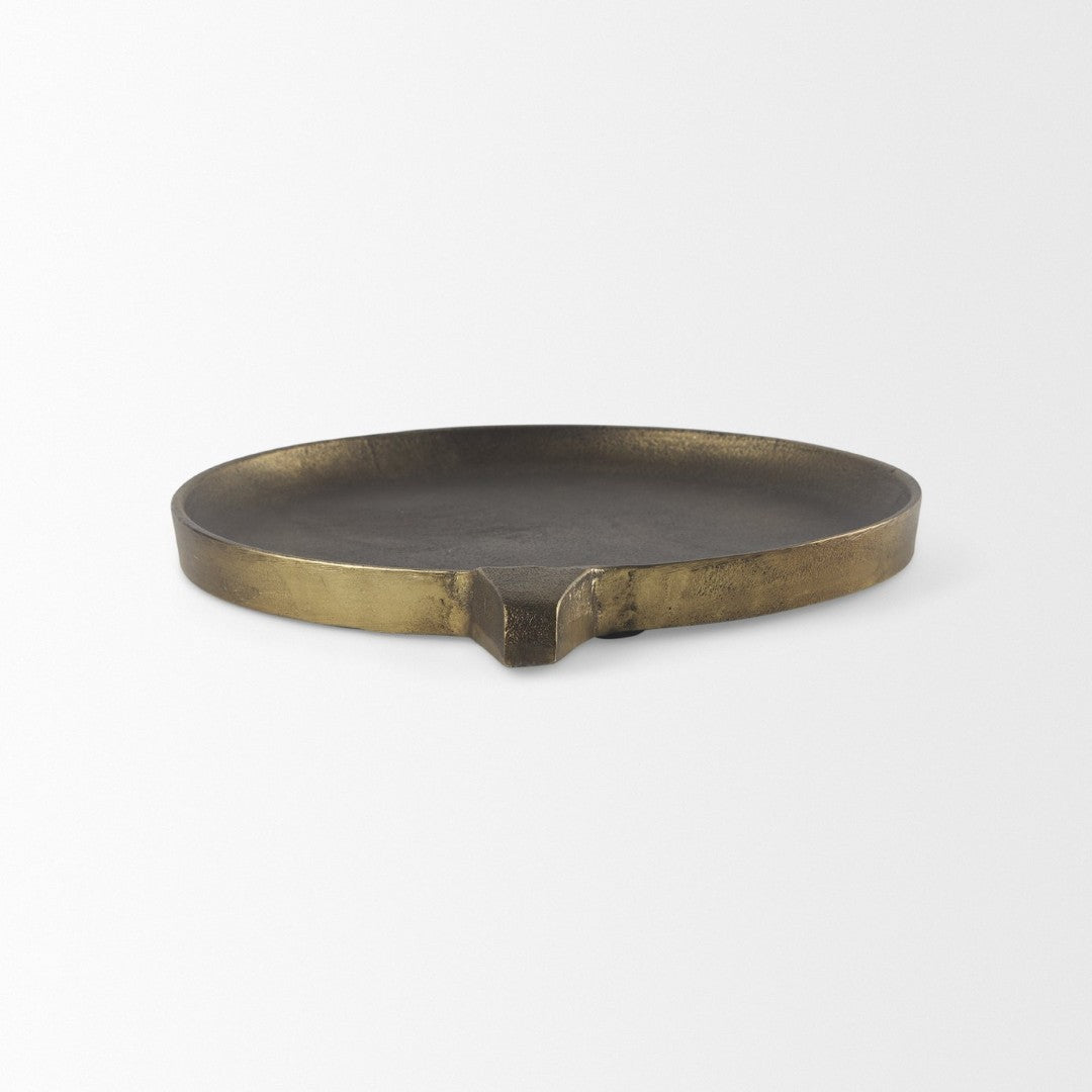 Add a touch of rustic elegance to any room with this small Marlowe aluminum tray. Finished in antiqued matte gold with a textured surface, it blends contemporary and transitional styles while providing a versatile platform for serving, display, or organizing everyday items.
