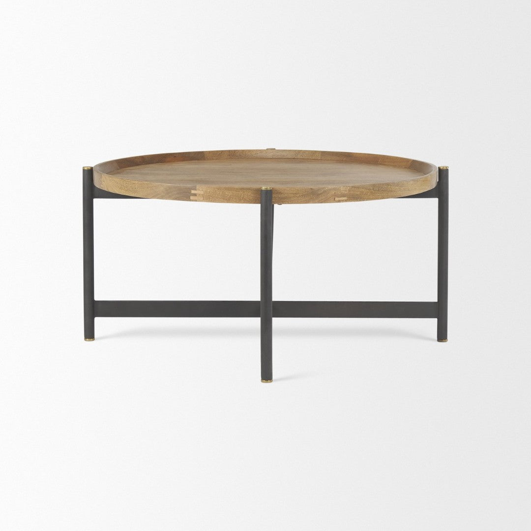 - Top Material: Solid mango wood tray-style tabletop with smooth texture and light brown finish that highlights natural character