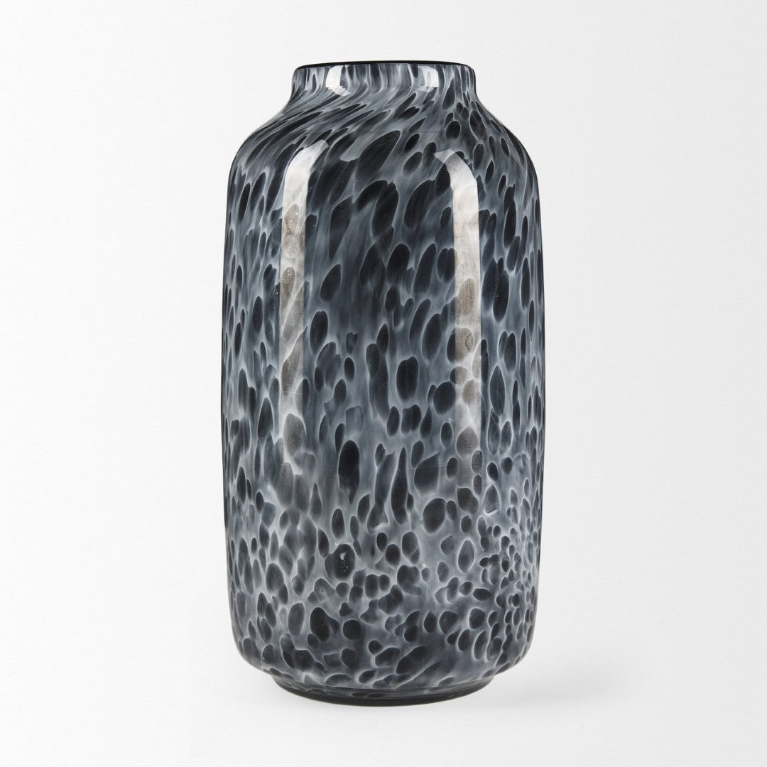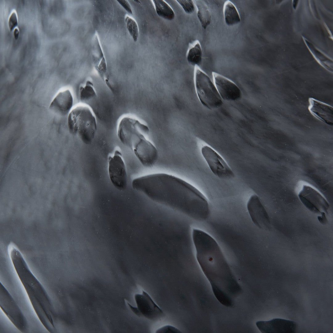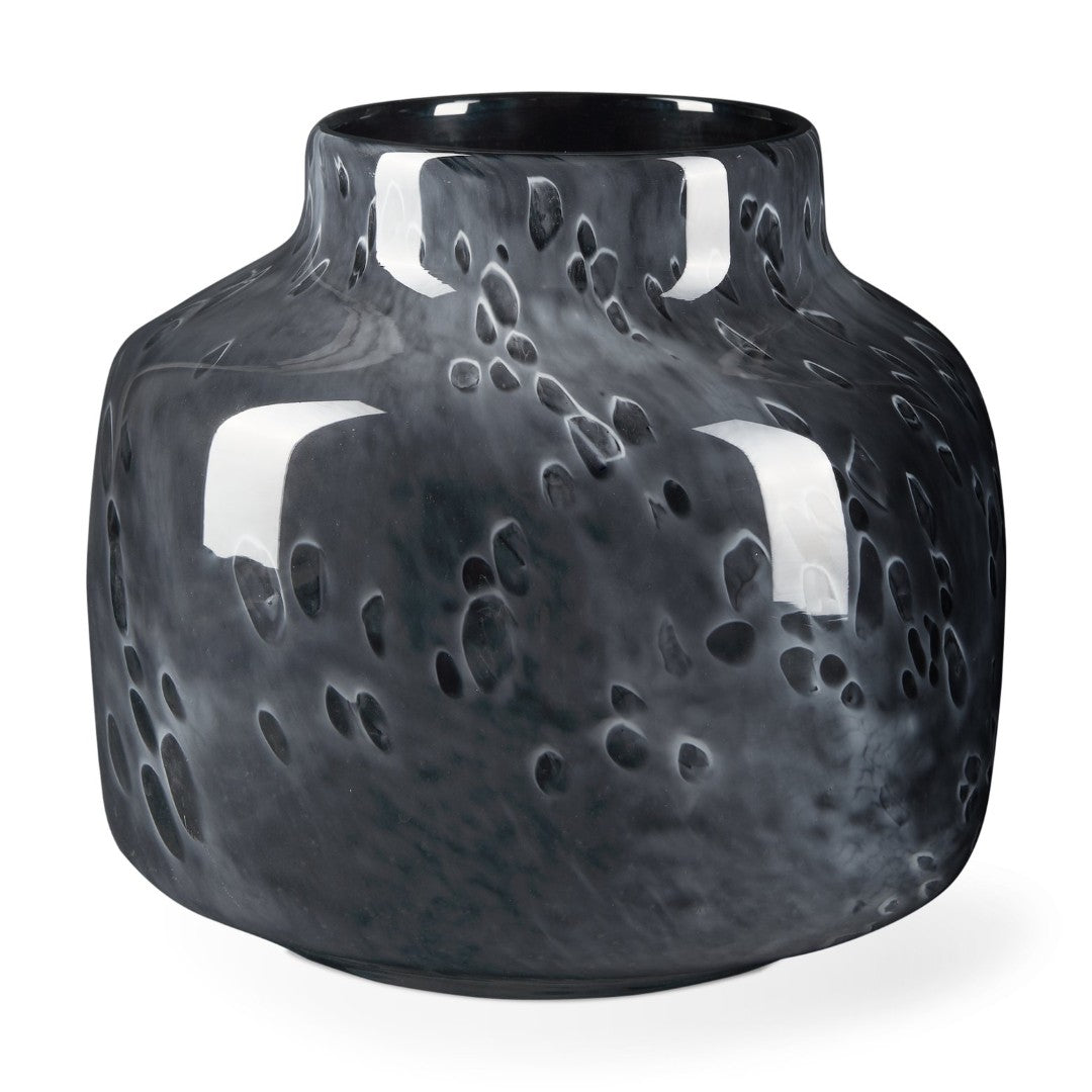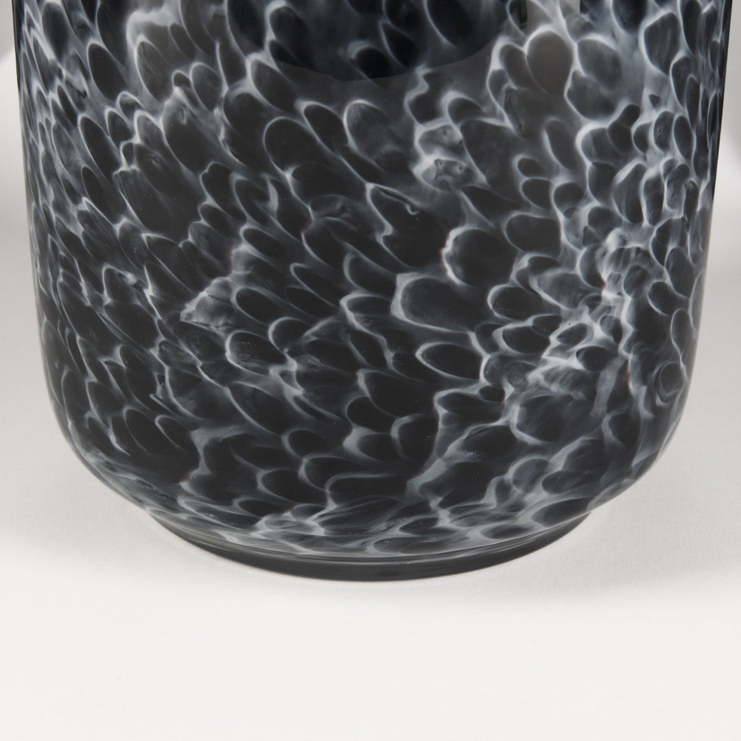- Color & Finish: Polished black glass with a mottled, cloudy/milky haze overlay; natural variation means each vase is one-of-a-kind.