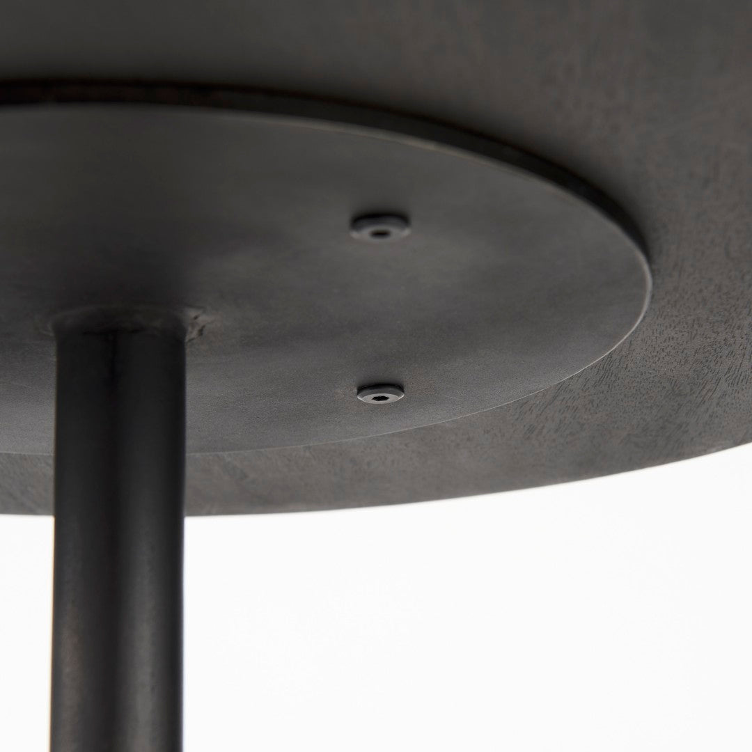 Bring refined simplicity to your living space with this elegant round pedestal side table. Crafted from solid mango wood with a slim iron stem and tapered wooden base, its compact footprint and tasteful finish make it an ideal accent for tight spaces, contemporary interiors, and modern-farmhouse schemes.