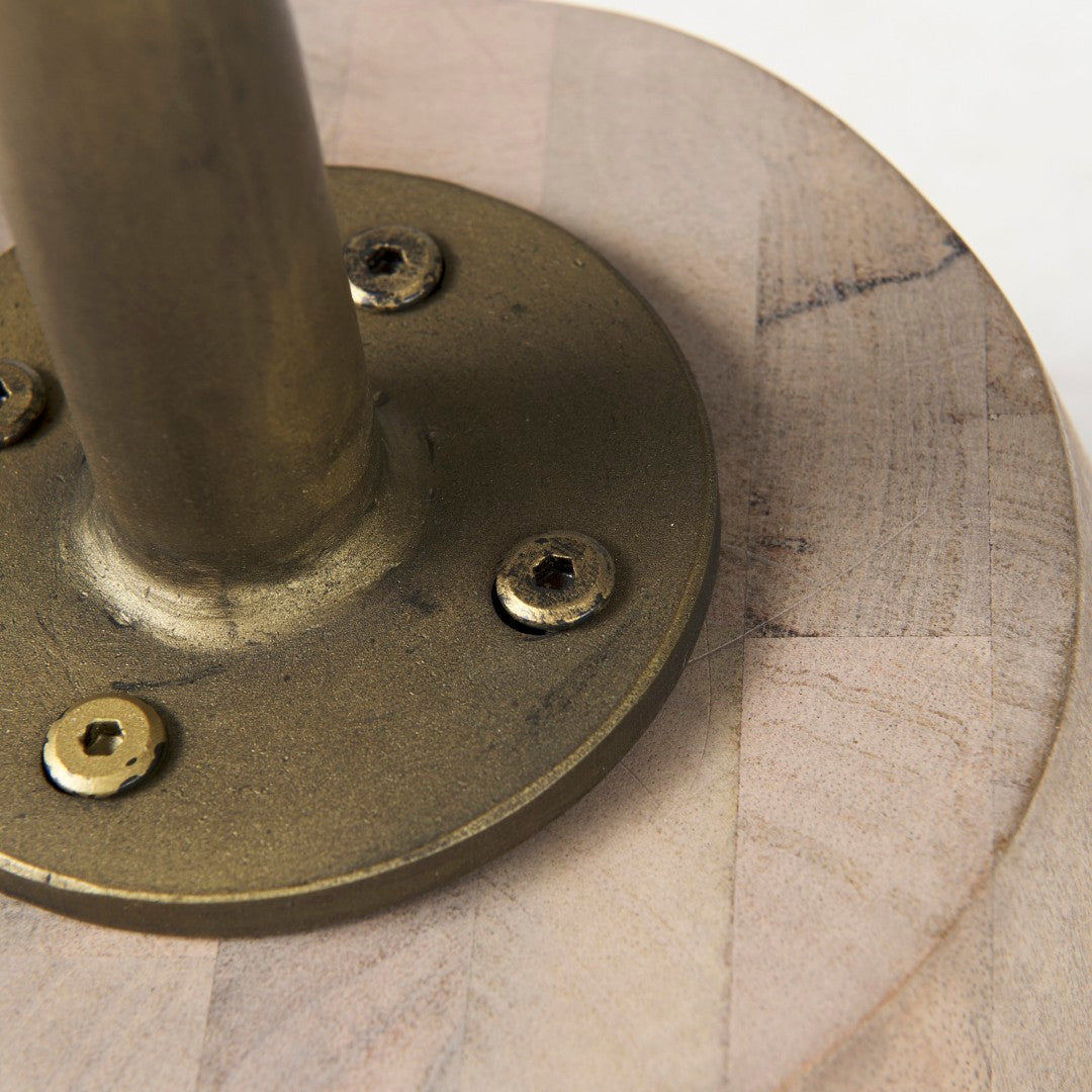 - Materials: Solid mango wood top and tapered wooden base with a slender iron pedestal for stability and visual contrast