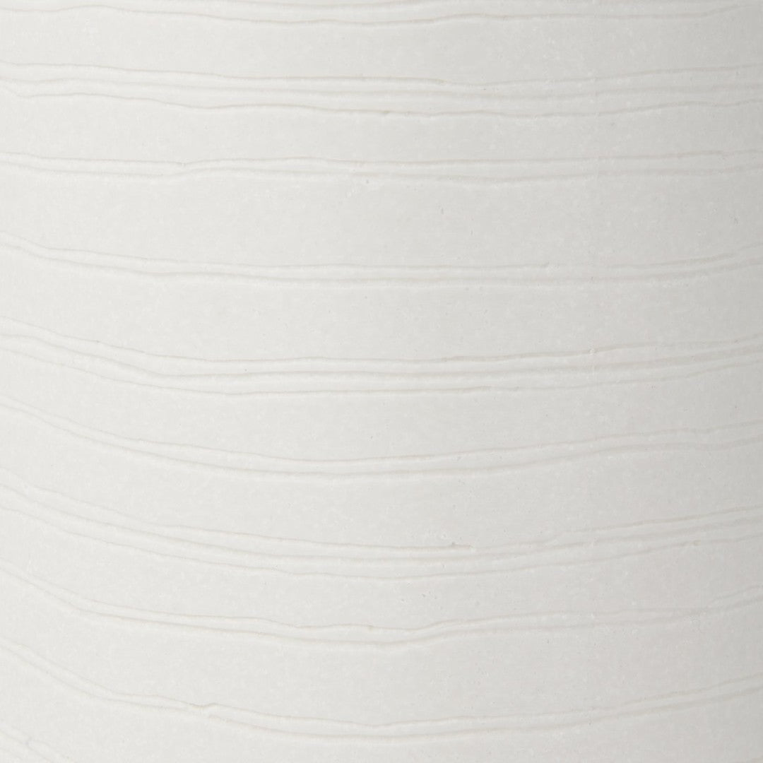 - Finish & Color: All-white palette—white ceramic base with a coordinating white fabric shade for a clean, airy aesthetic