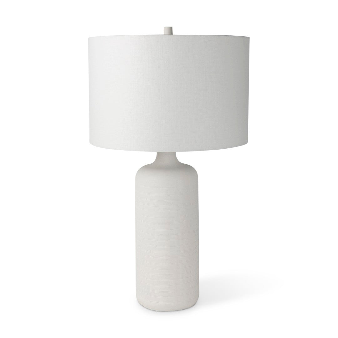 Elevate your bedside or side table with the Melanie table lamp — a refined, minimalist piece that blends contemporary form with soft, ambient lighting. Its jar-shaped white ceramic base and round fabric shade create a cohesive, serene look that complements modern, transitional, and coastal interiors while providing practical illumination for reading or relaxing.