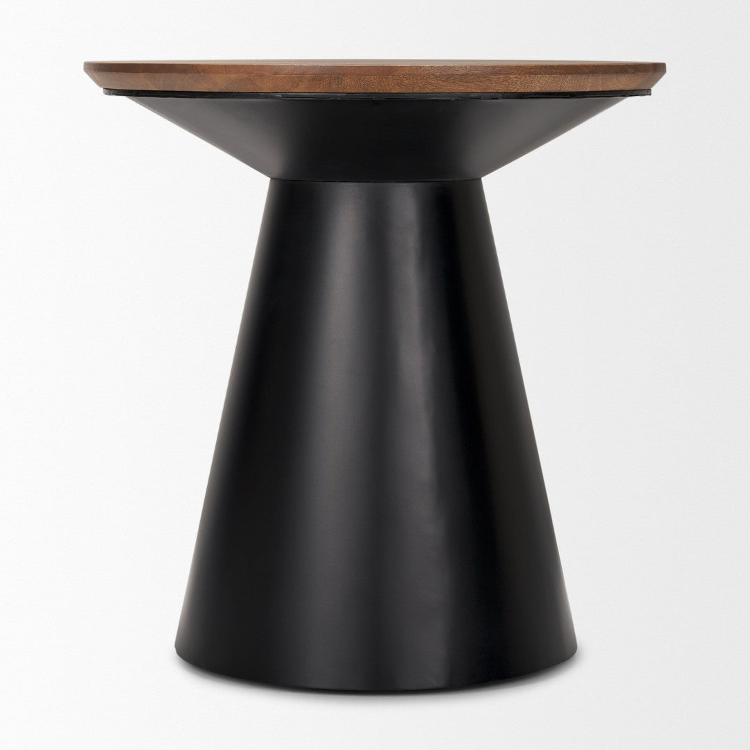 This contemporary side table blends industrial strength with warm, natural character — a versatile accent for living rooms, bedrooms, or offices. Its solid mango wood top and sturdy black iron pedestal base create a striking contrast, while a compact footprint makes it ideal beside sofas, chairs, or in tight spaces.