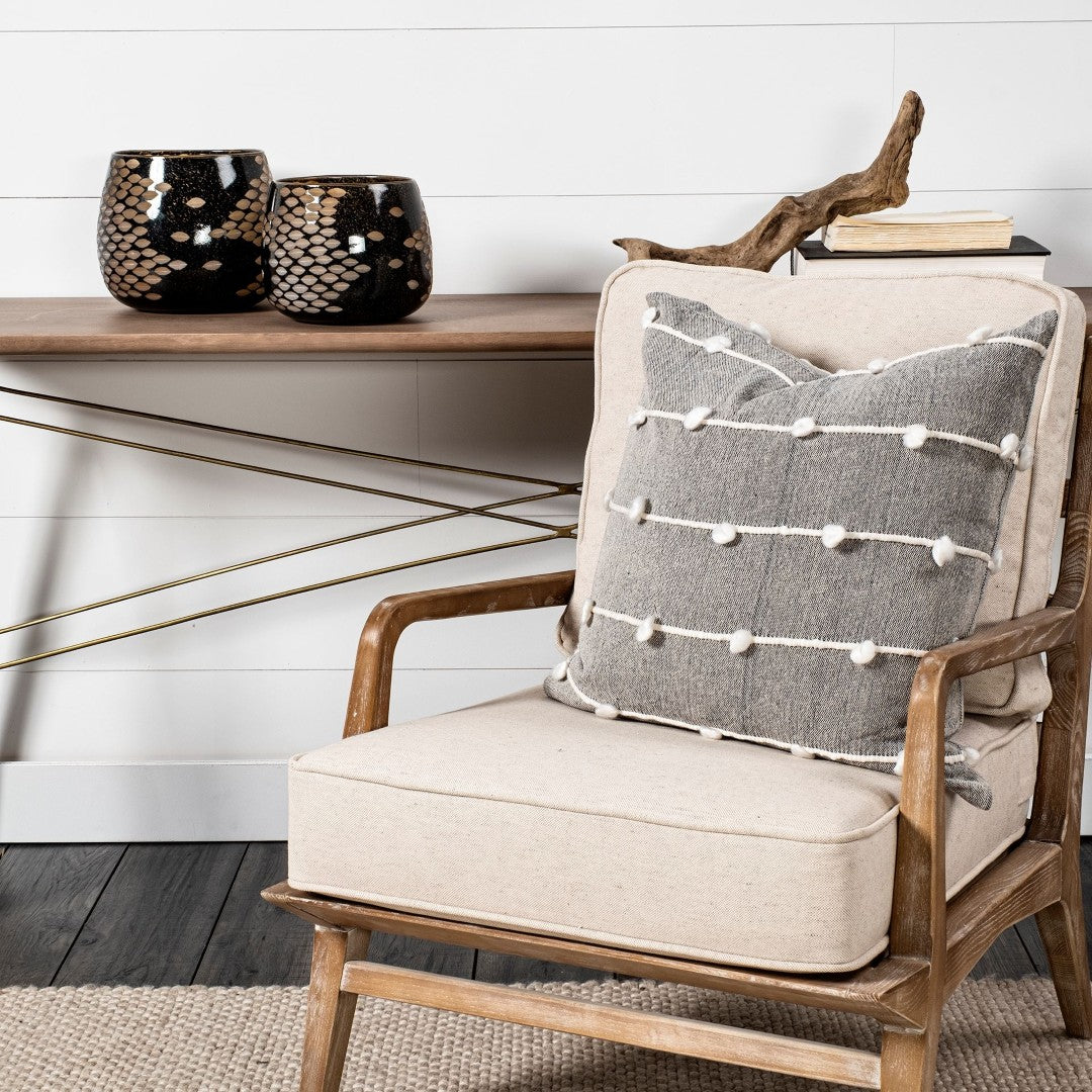 Elevate any shelf, mantel, or tabletop with the Mojave glass vase — a compact, artful accent that blends modern Desert and Southwestern influences with refined metallic detailing. Its sleek black finish and subtle gold highlights create a striking focal point on its own or as part of a curated vase grouping, bringing instant style and texture to contemporary, boho, or global-inspired interiors.