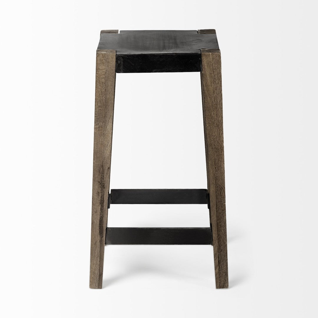 Elevate your kitchen island or bar area with the Nell II — a refined industrial-style counter stool that pairs a matte-black metal seat with warm medium-brown solid wood legs. Designed for durability and visual contrast, this backless stool combines handcrafted solid mango wood construction with a flat iron seat and integrated foot rest for comfortable, everyday use.