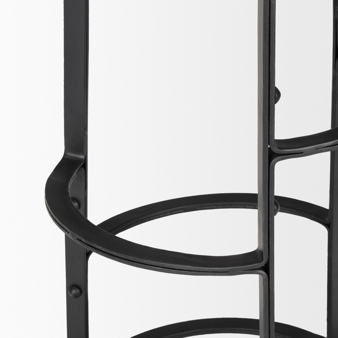- Comfort & Support: Contoured round wooden seat for ergonomic seating; integrated metal rungs serve as reinforced supports and a comfortable footrest