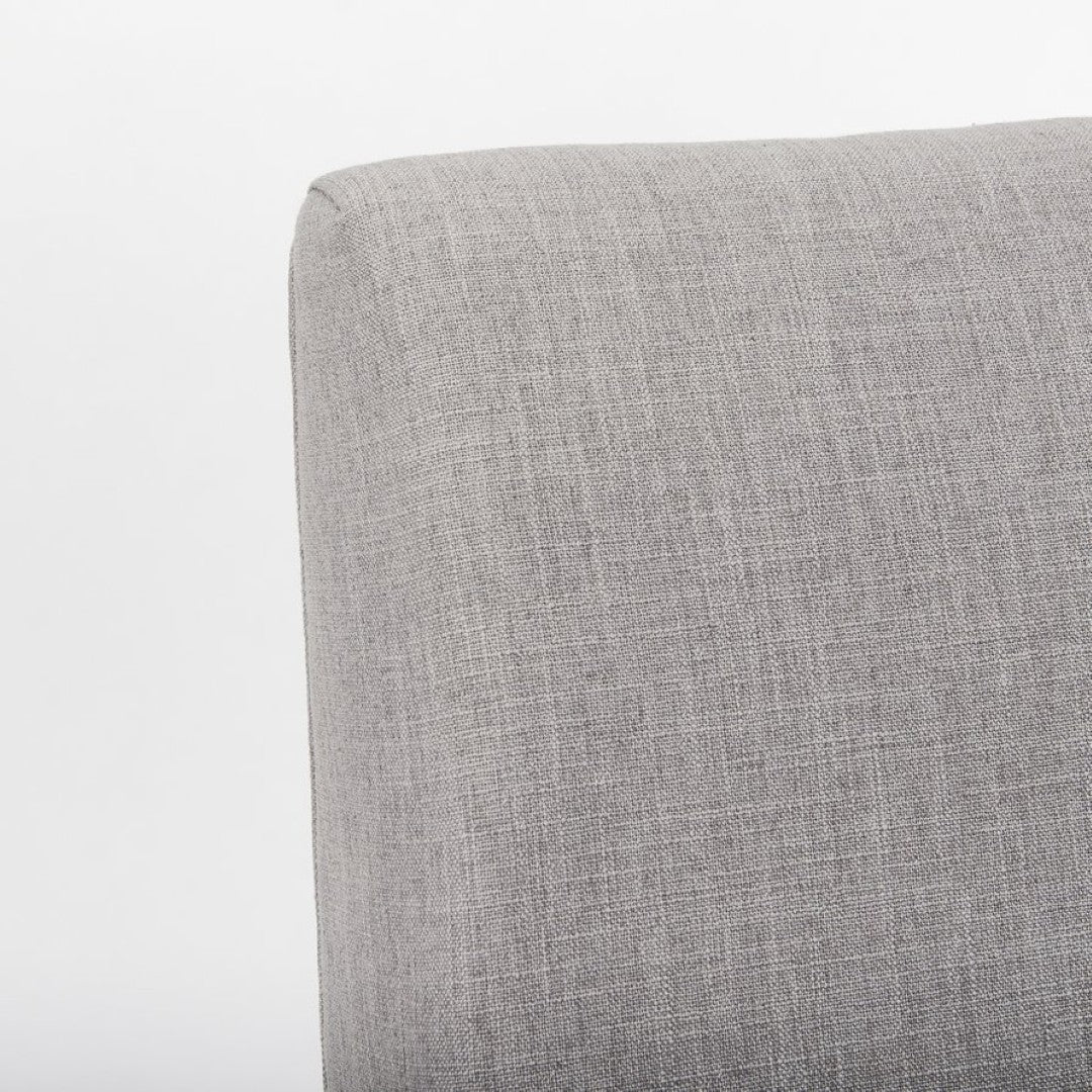 - Cream linen-blend upholstery adds subtle texture and a refined finish