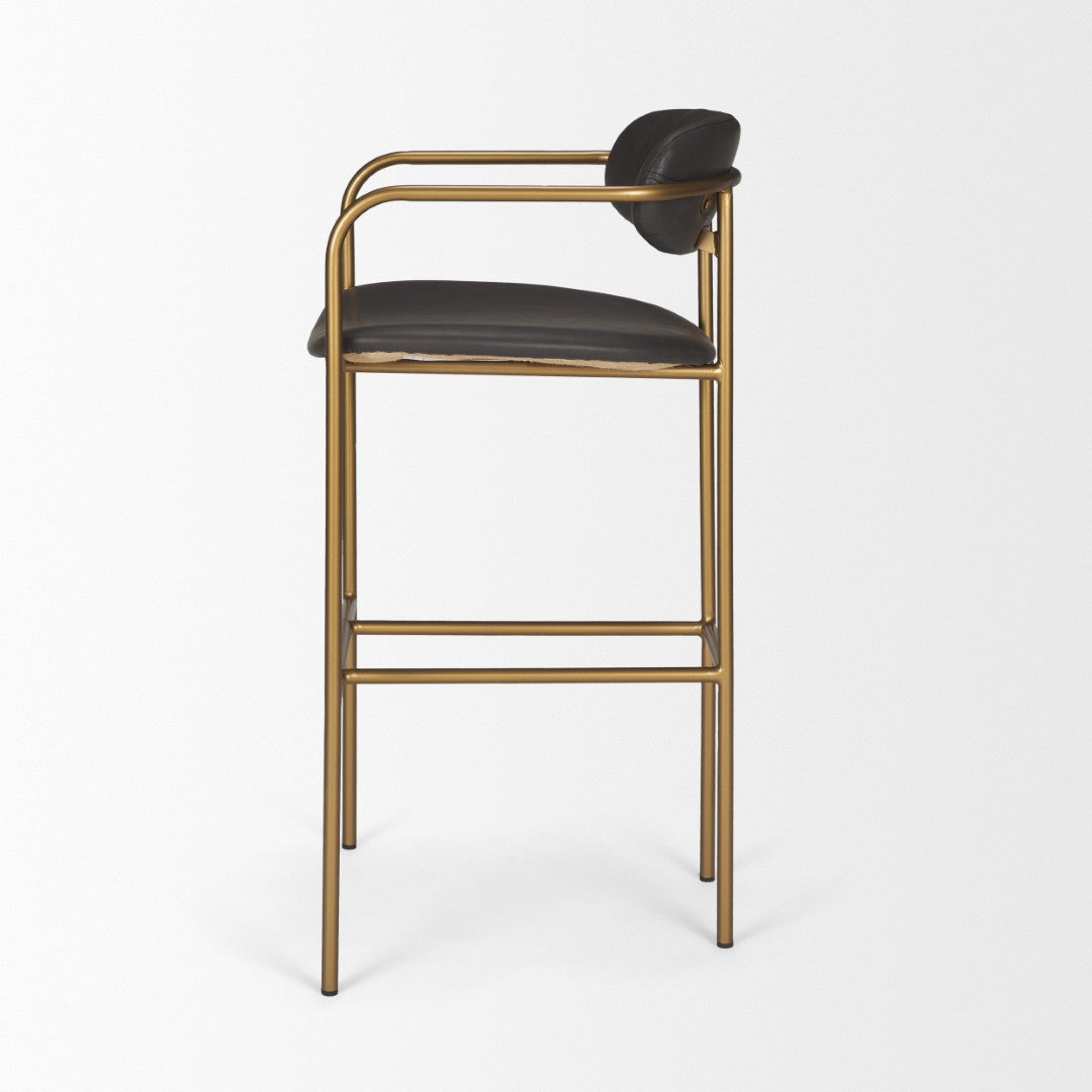 Bring modern elegance and comfort to your bar or kitchen with this refined faux-leather bar stool. It pairs a warm brown, open-back seat with a gold satin metal frame for a look that’s both contemporary and inviting. Delivered fully assembled, the stool is ready to elevate your space right out of the box.