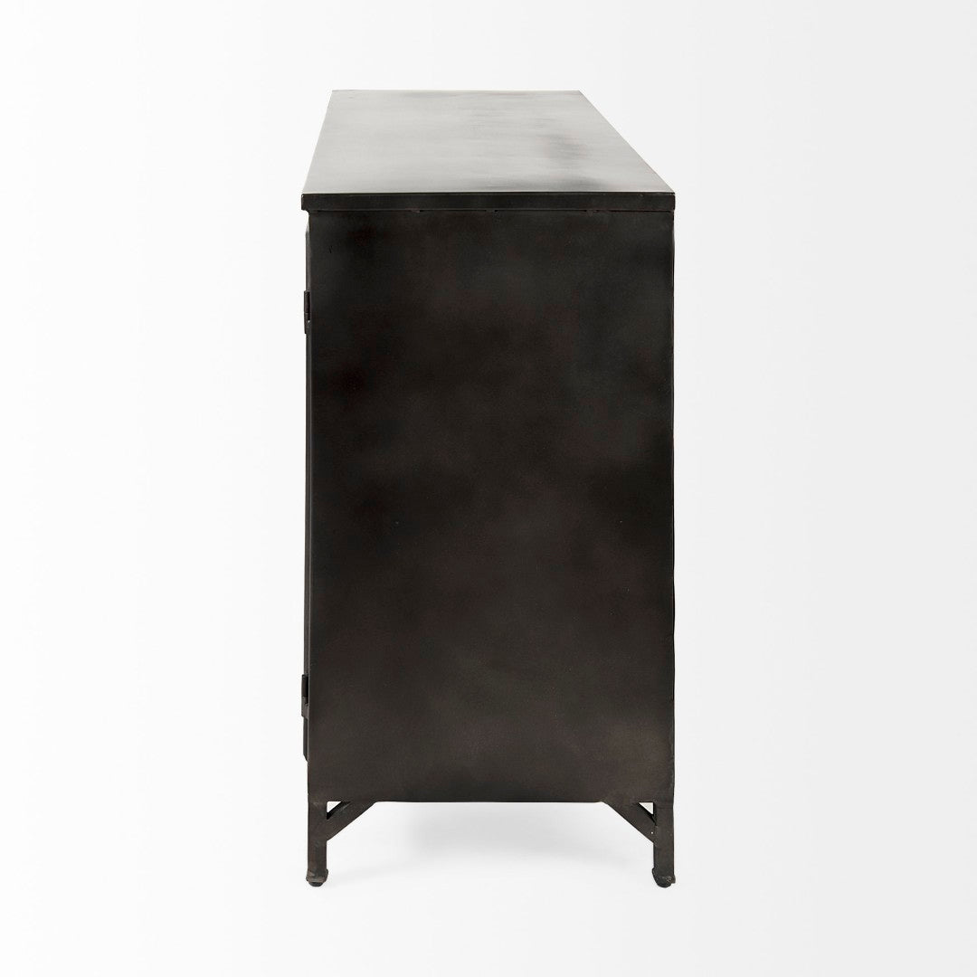 - The Poppy sideboard features a solid metal body finished in a stunning black polish. The solid metal composition ensures unparalleled stability.