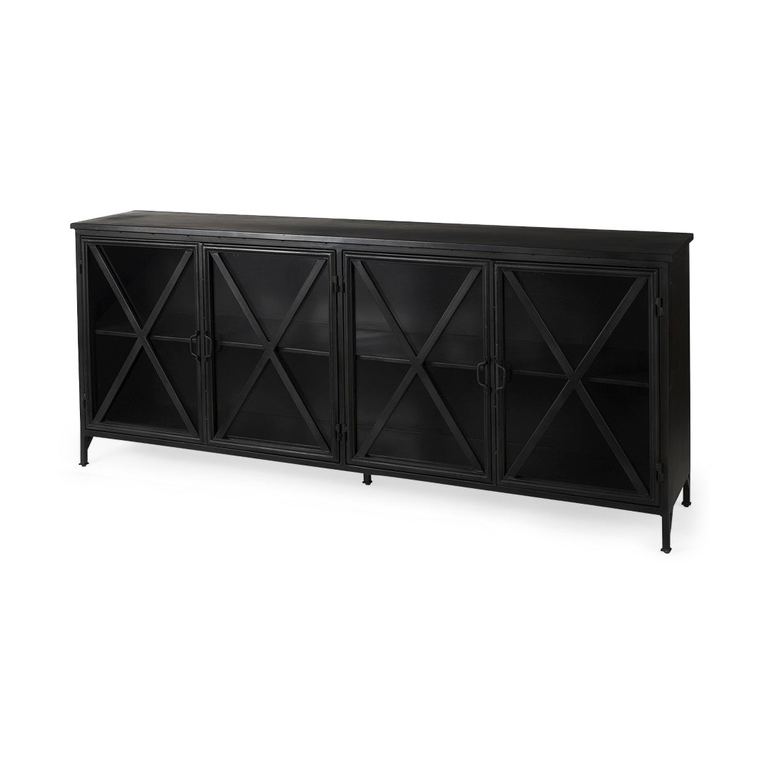 Elevate your living or dining space with the Poppy I sideboard — a sleek, industrial-modern storage solution that pairs a durable all-metal construction with glass-lined doors for elegant display and easy access. Its clean lines and black finish provide a versatile backdrop for décor while offering practical organization for kitchenware, linens, media, and more.
