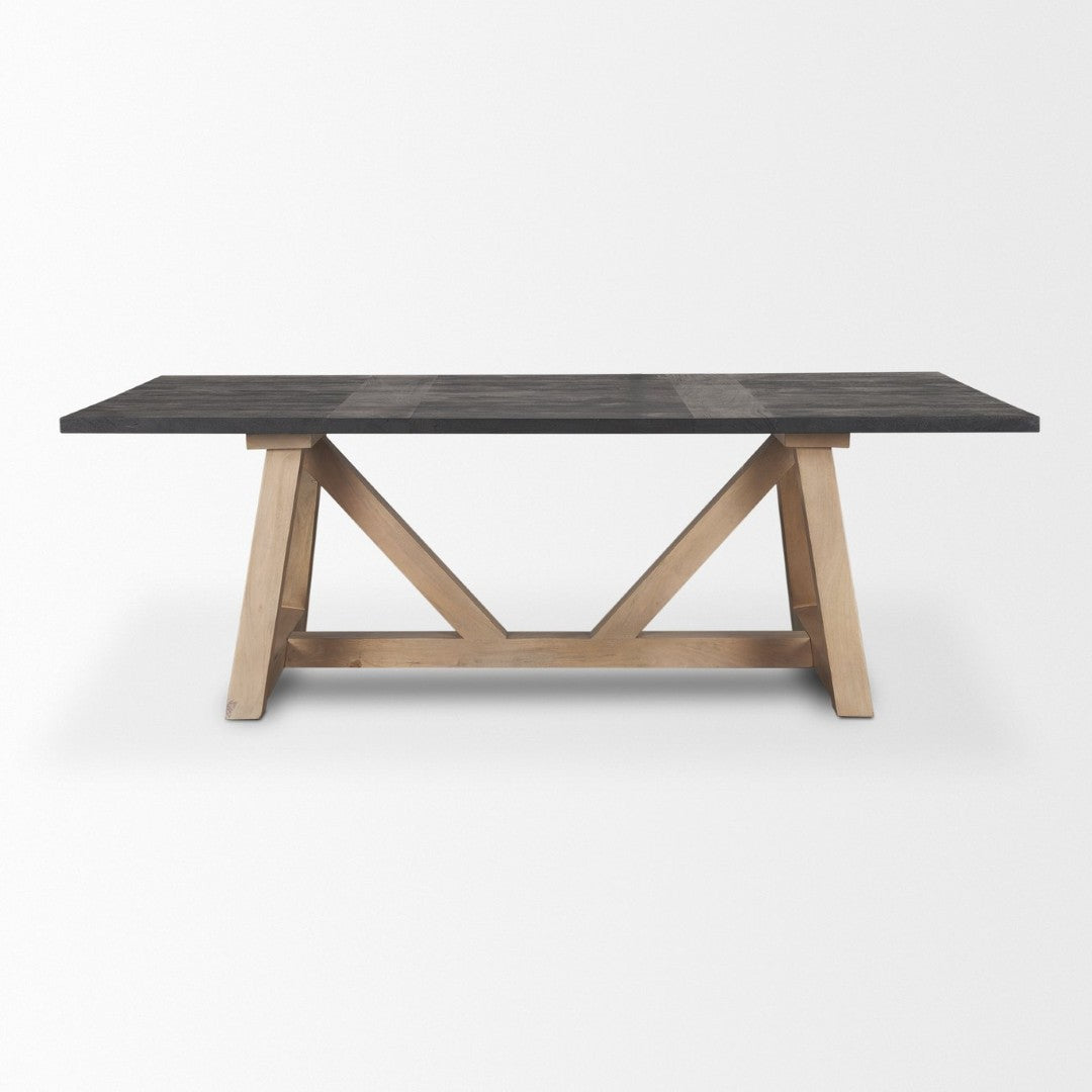 Elevate your dining room with this elegant two-tone solid wood dining table that combines sturdy craftsmanship with a refined modern-traditional look. The rich brown tabletop contrasts beautifully with the black accents for a versatile piece that anchors family meals and special gatherings while offering long-lasting durability and timeless appeal.