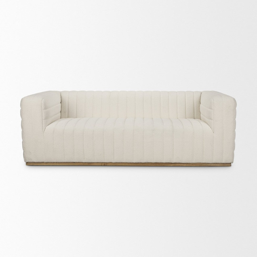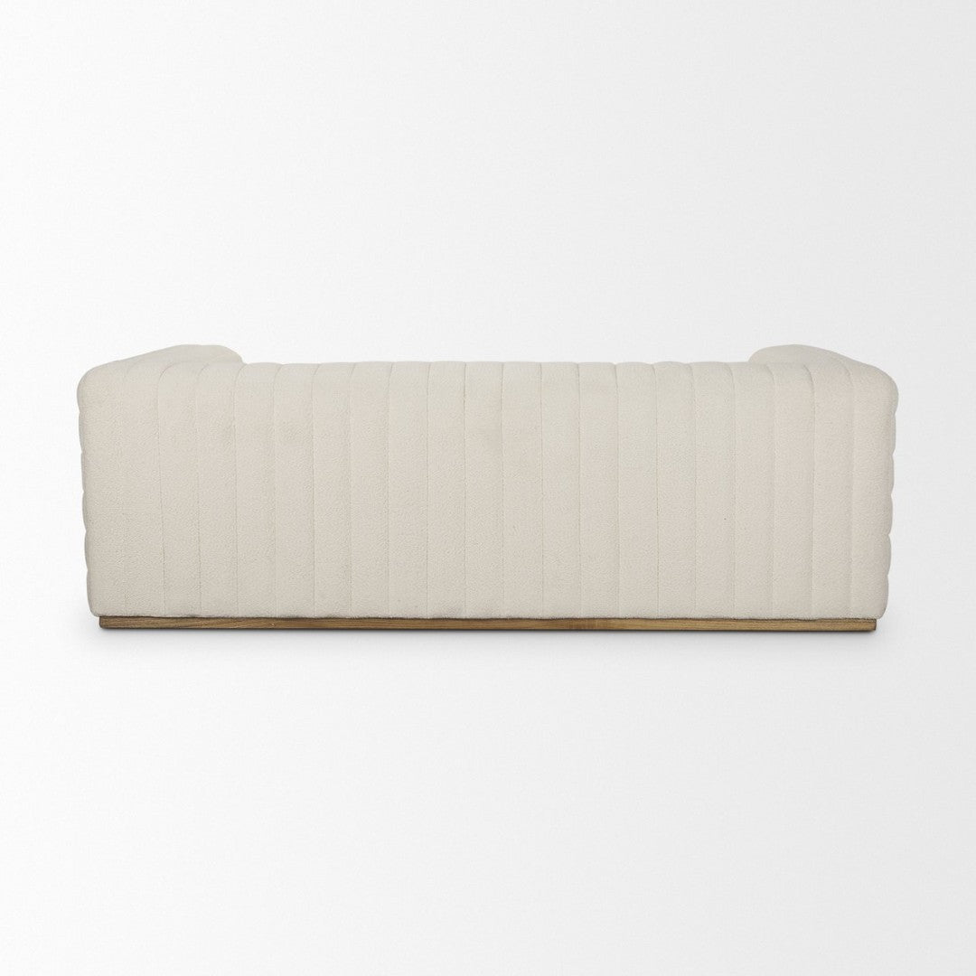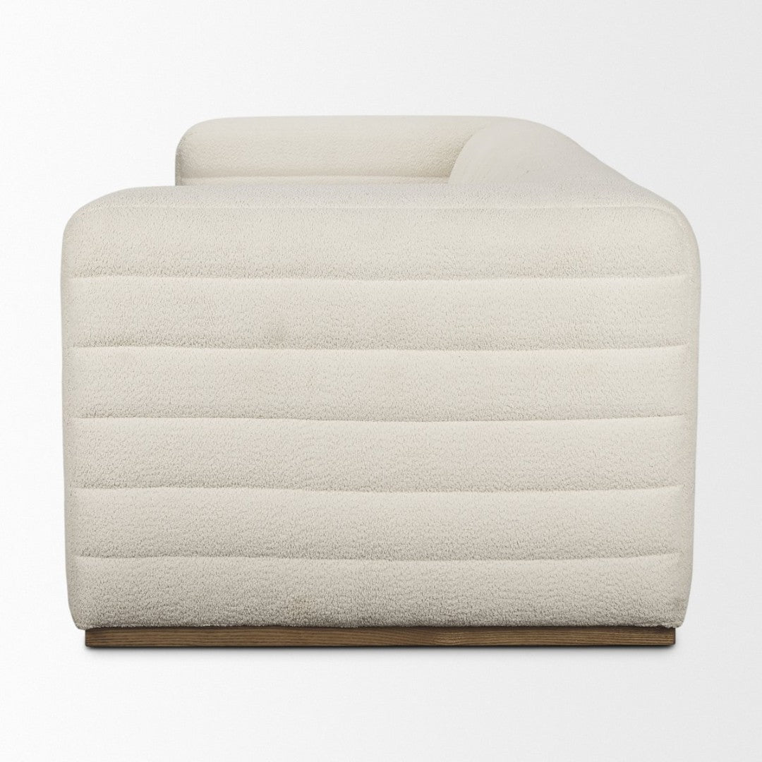 - Upholstery: Luxe cream bouclé fabric with ribbed channels that add depth, texture, and visual interest.