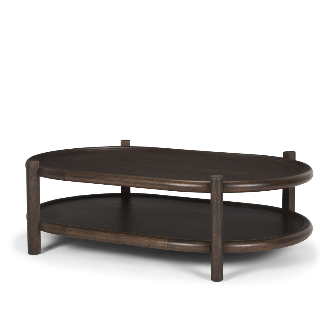 Elevate your living room with the Romi Coffee Table — a timeless, oval-piece crafted from rich dark brown mango wood that blends classic charm with everyday functionality. Its two-tier design offers generous display and storage space while the solid wood construction ensures durability and a warm, natural presence in any decor style. Ideal for anchoring seating areas or showcasing decorative accents.