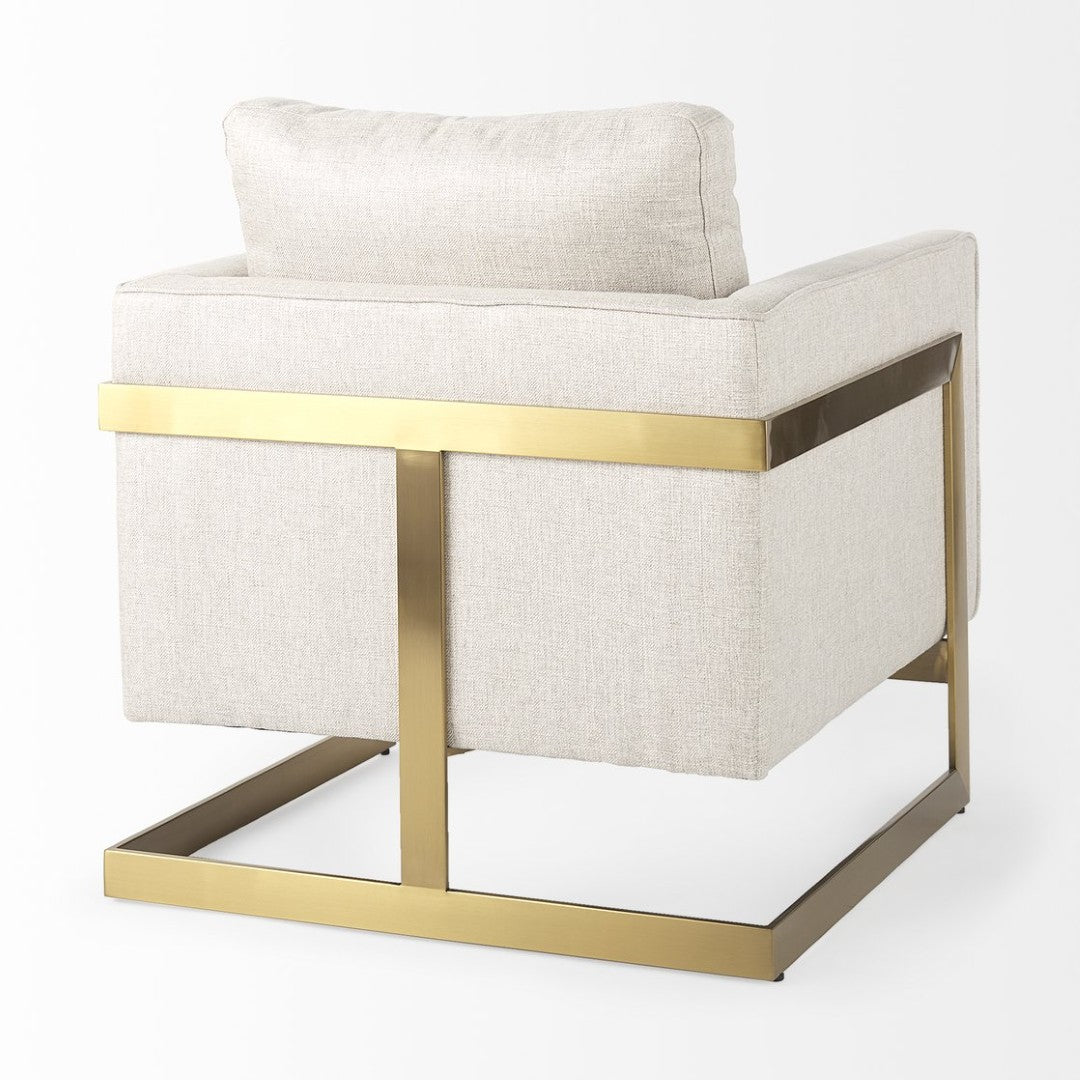 Elevate your living space with the Rupert — a luxe, modern club chair that blends plush comfort with striking metallic contrast. Wrapped in soft cream poly-linen and supported by a gold-polished stainless steel cantilever frame, this chair offers an inviting seat and a designer silhouette that complements contemporary, glam, and relaxed-modern interiors. Delivered fully assembled, Rupert is a ready-to-enjoy statement piece that balances durability with refined style.