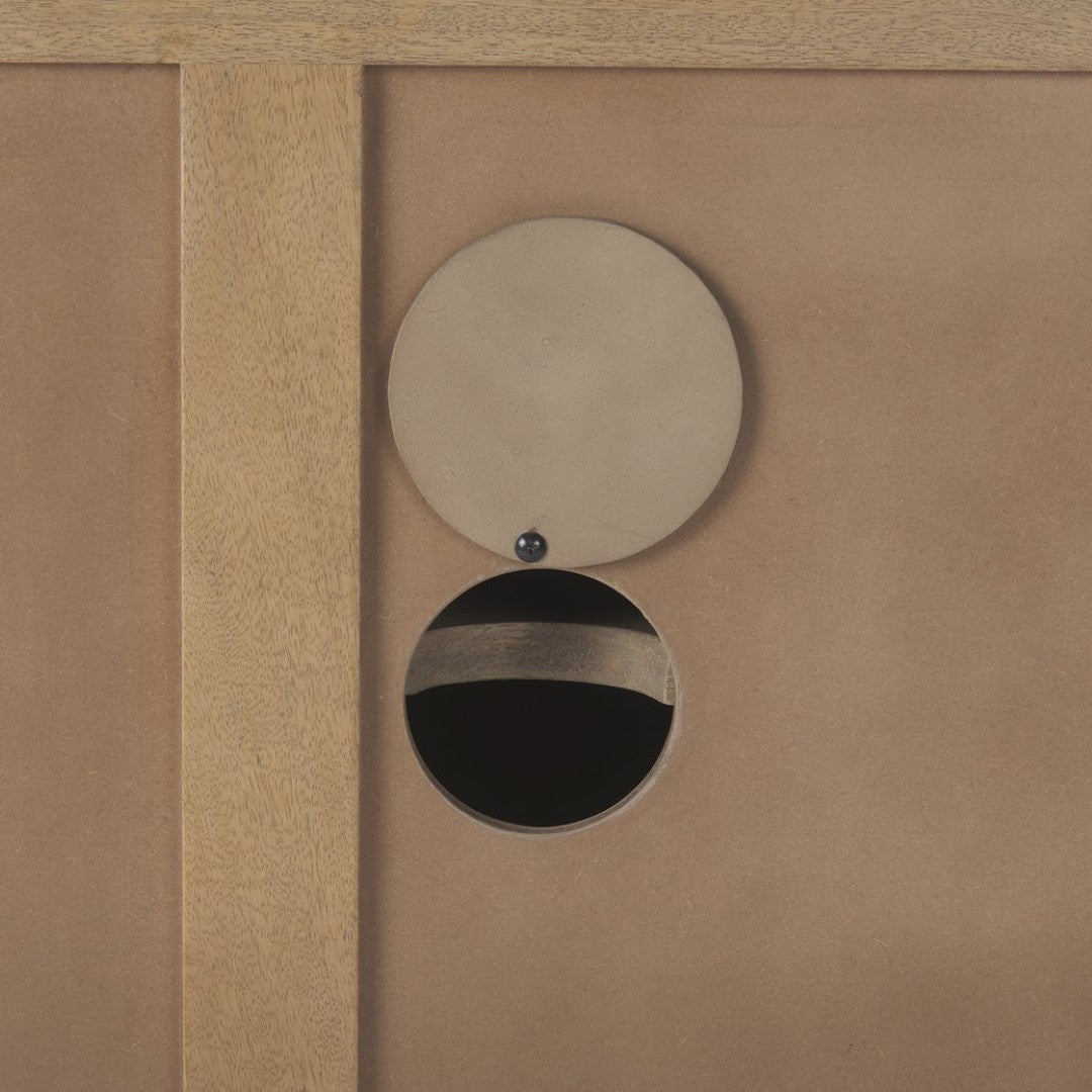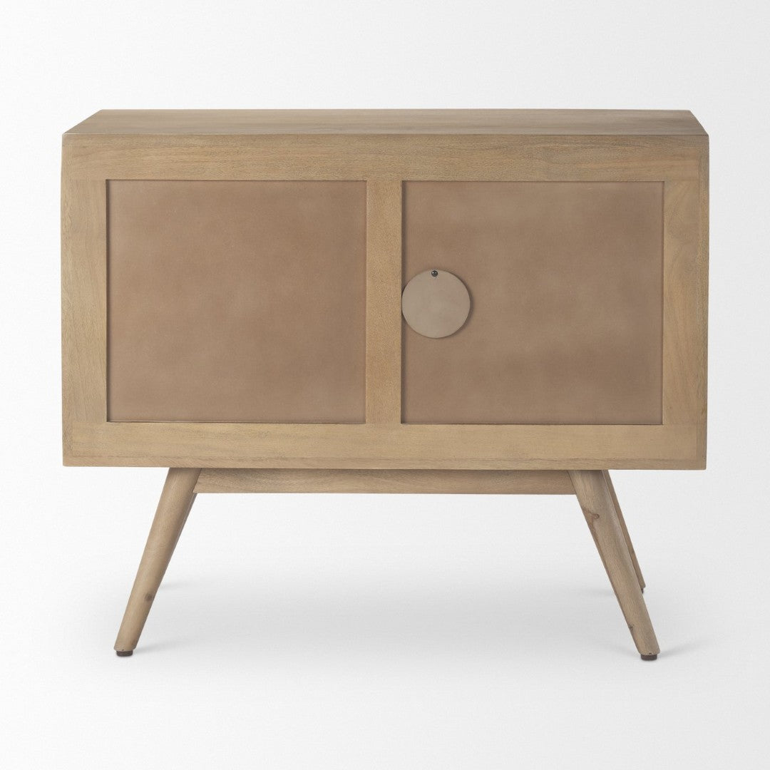 A striking blend of modern design and warm, natural materials, this light brown accent cabinet brings texture and practical storage to living rooms, entryways, or bedrooms. Crafted from solid mango wood with a contemporary checkered pattern and splayed spindle legs, it offers durable construction and a refined silhouette that complements a variety of décor styles.