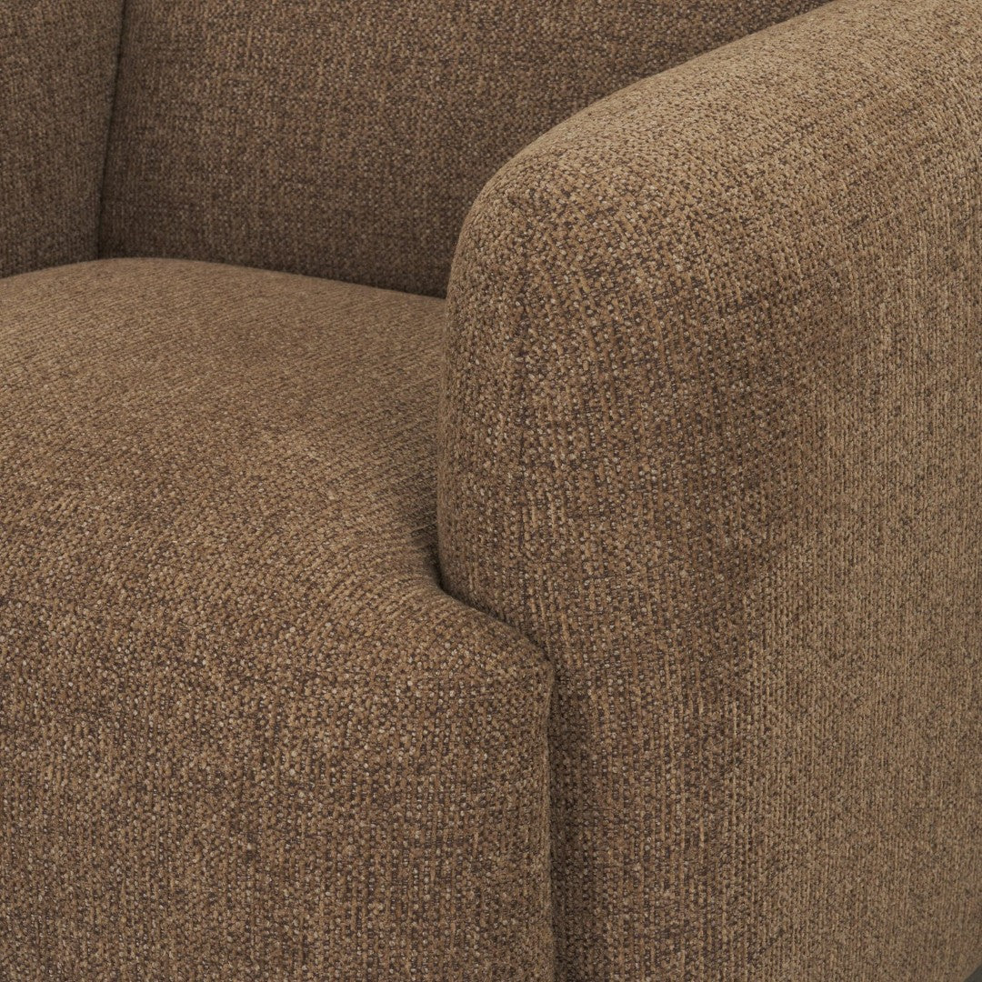 Sink into the inviting comfort of this plush, mocha brown upholstered chair — a refined blend of classic silhouette and contemporary texture that brings warmth and character to any room. Its rounded volumes, cushioned arms, and thick textured fabric offer an heirloom-quality look while providing everyday comfort ideal for living rooms, reading nooks, or beside a fireplace.
