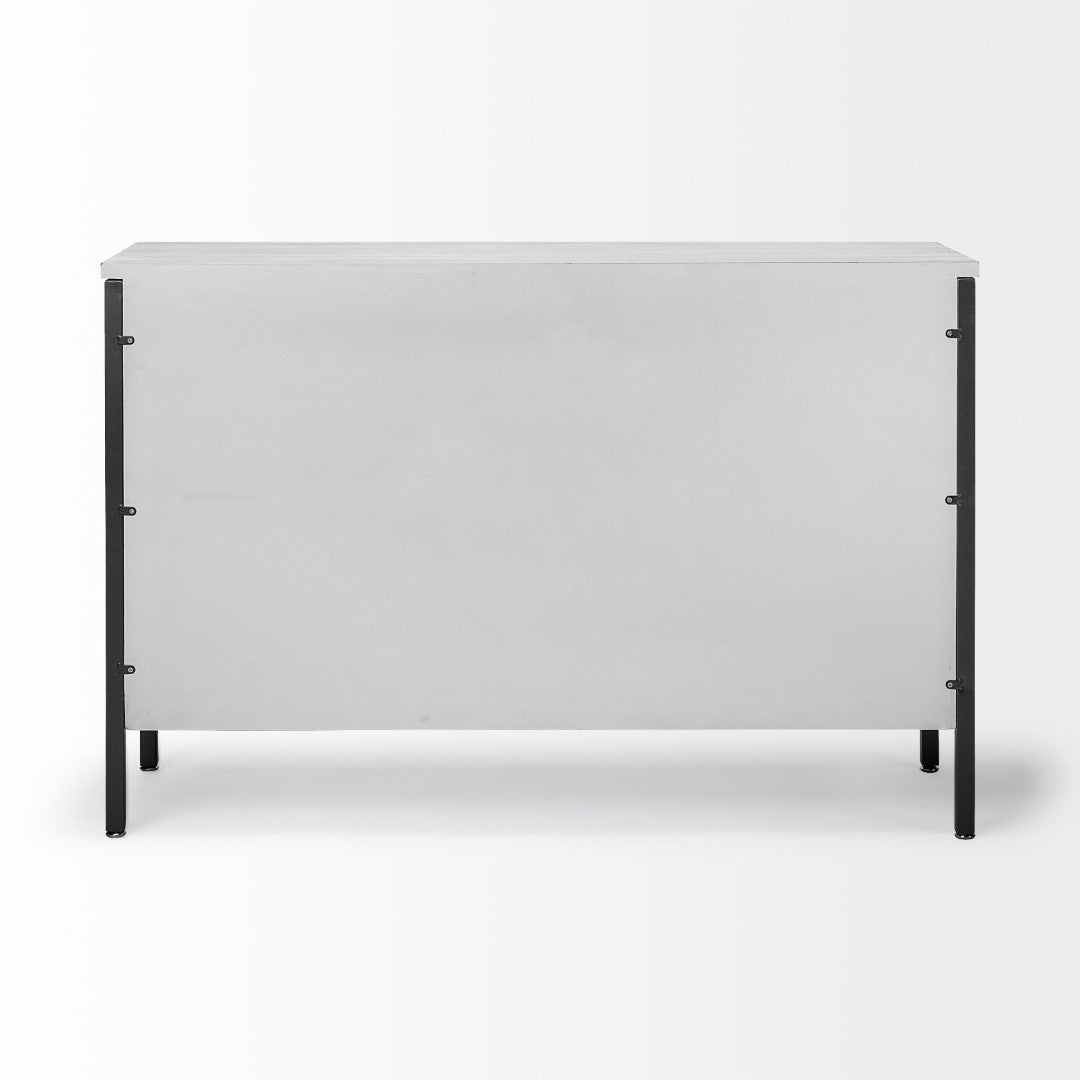 Elevate your entryway, dining room, or living space with the Savannah II — a refined accent cabinet that blends rustic white fir veneer with a gray metal frame for a modern, globally inspired look. Its clean lines, hexagonal embossed door details, and practical storage make it both a stylish focal point and a functional piece for everyday use.