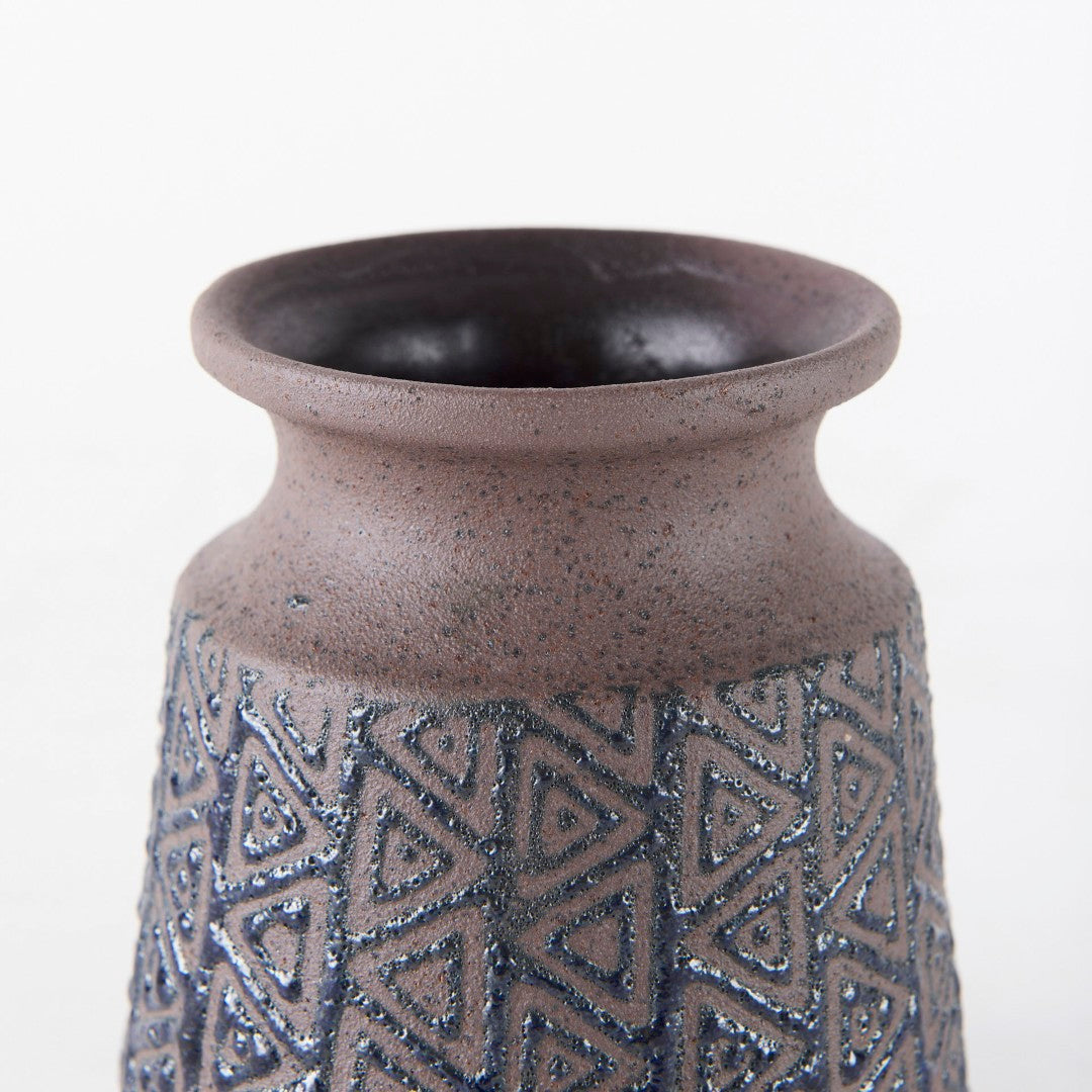 - The Sefina is finished in a rich brown finish with black geometric patterns, making it a gorgeous vase that is sure to turn heads.