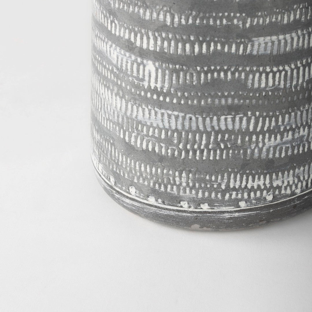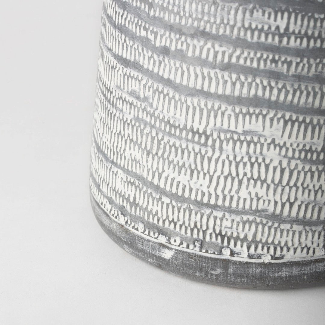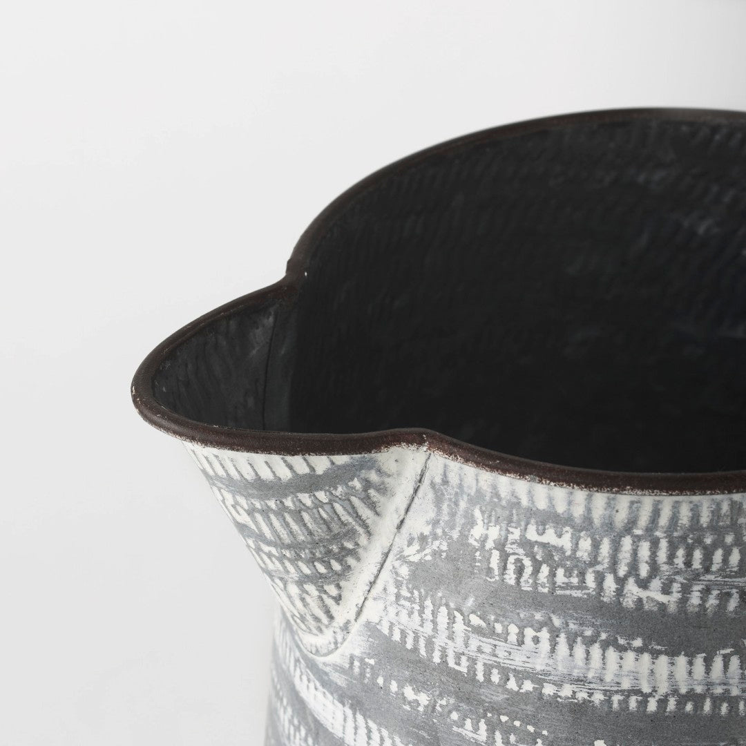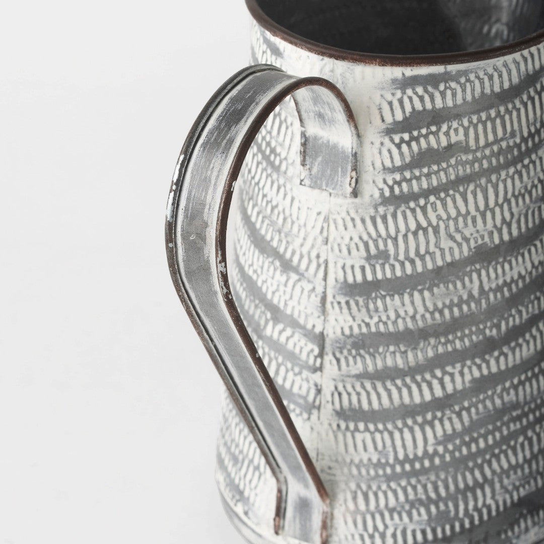 Add rustic charm and modern texture to any room with this decorative metal jug. The Serena-series pitcher pairs a tactile patterned body with a functional pour spout and sturdy metal handle, making it equally suited for tabletop styling, mantel displays, or as a standalone accent piece. Its neutral gray-and-white finish complements a wide range of interiors from farmhouse to contemporary.