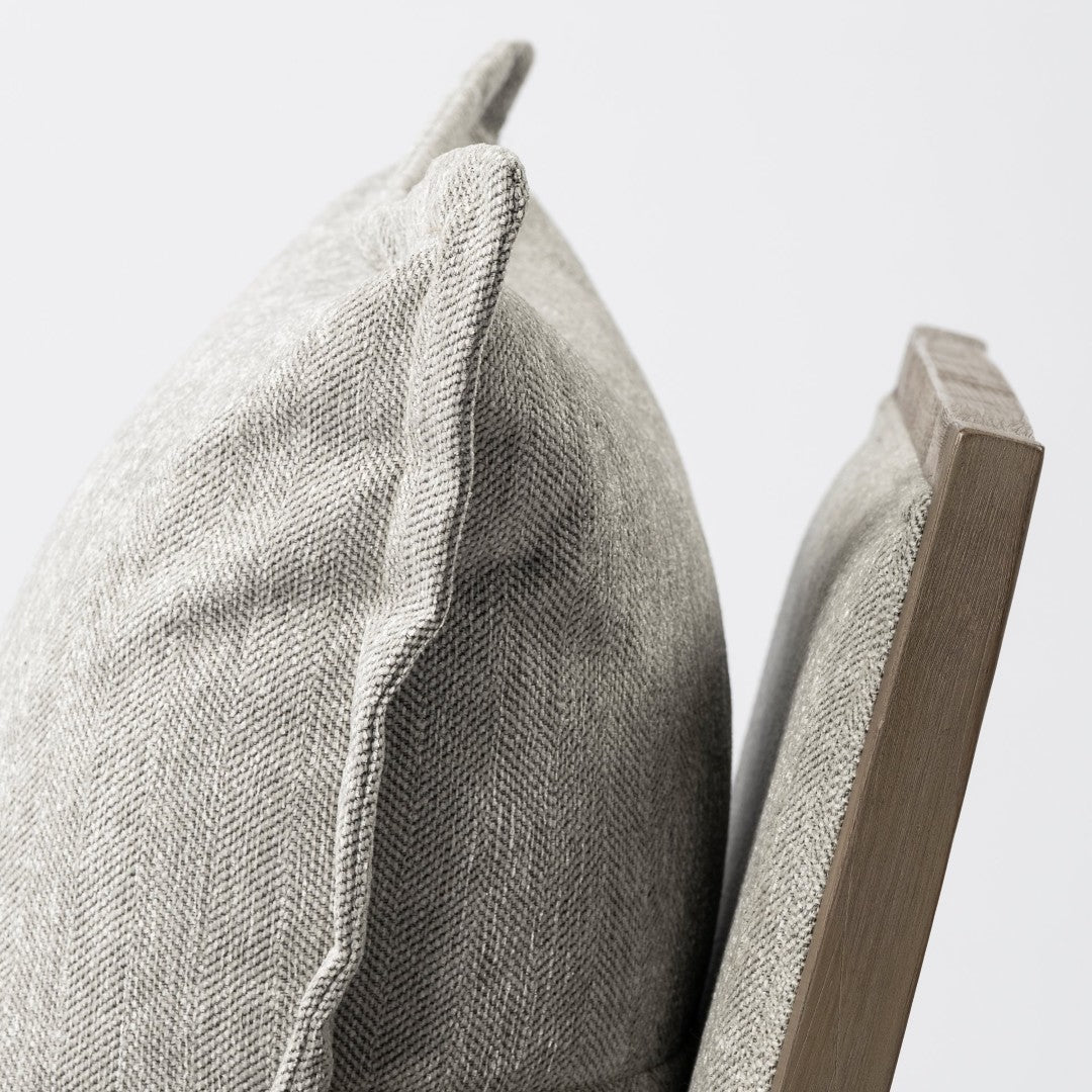 - Upholstery: Frost-gray fabric-wrapped detached seat and back pillows for plush comfort