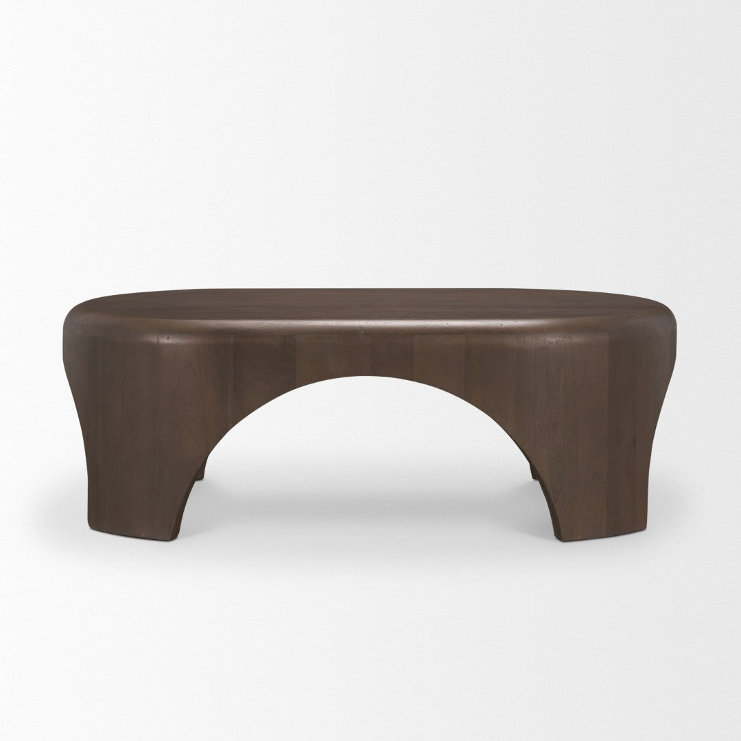 Elevate your living space with this elegant oval coffee table, combining solid craftsmanship with modern, sculptural design. Its smooth dark matte brown finish and gracefully arched cut-out legs create a refined focal point that complements contemporary and transitional interiors while offering durable everyday use.