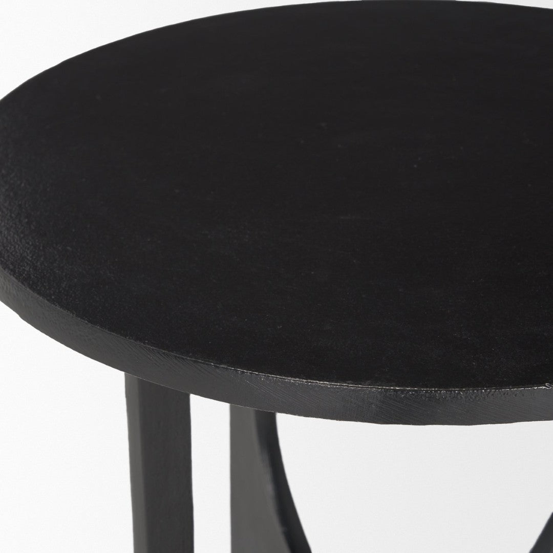 Elevate any room with the Sobi textured matte black accent table — a striking blend of modern minimalism and artisanal metalwork. Its cast-metal construction and smooth stippled matte finish create depth and texture while maintaining a sleek, contemporary silhouette that complements living rooms, bedrooms, or entryways. Built for both style and function, this compact round table works as a side table, plant stand, or decorative pedestal.