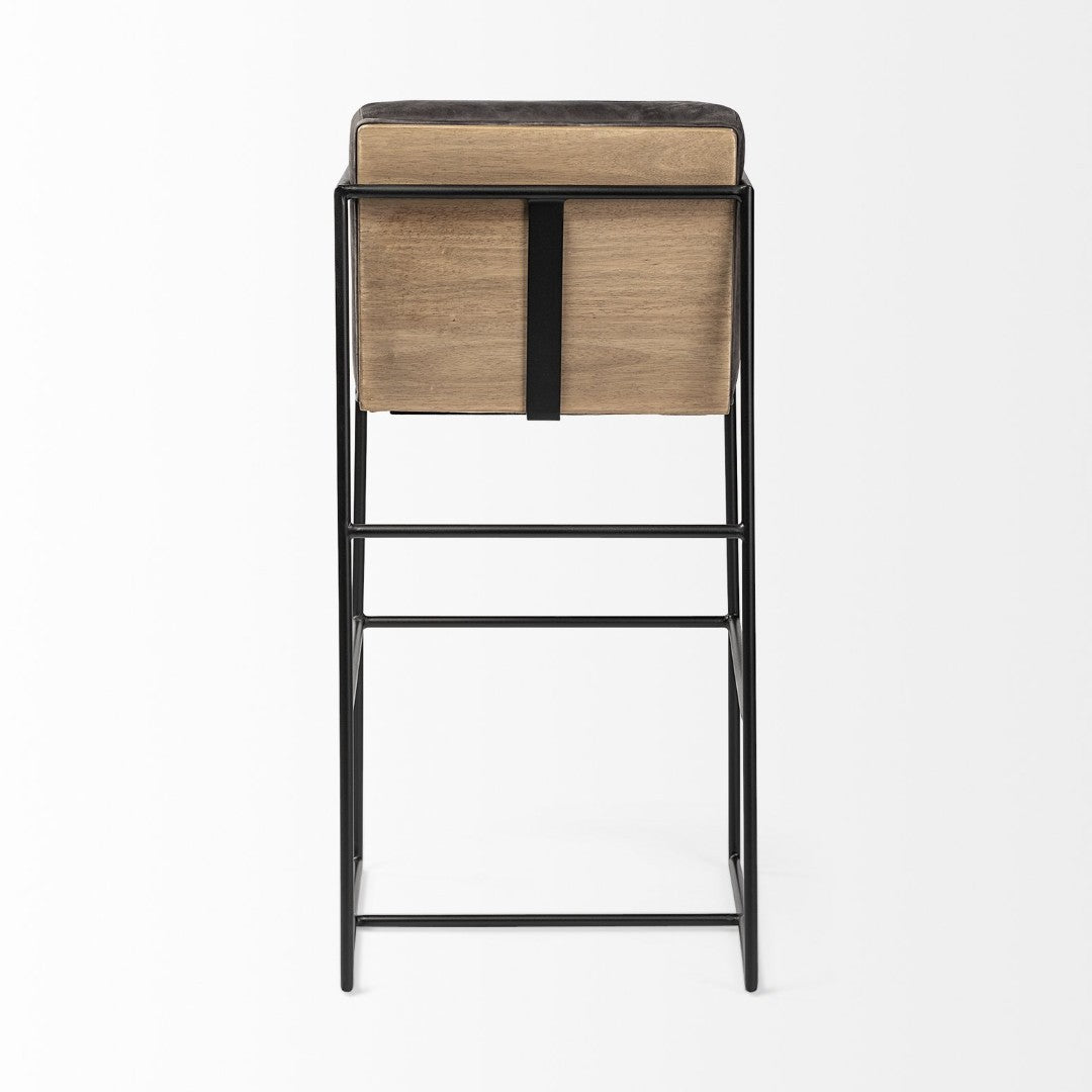 Comfortable, contemporary, and built to last, this bar stool blends genuine leather upholstery with a sturdy metal frame and warm wood accents for a refined look that suits modern, industrial, and West Coast contemporary interiors. Its generously cushioned seat and supportive wood back deliver long-lasting comfort while the matte-black iron frame provides stability and an understated aesthetic.