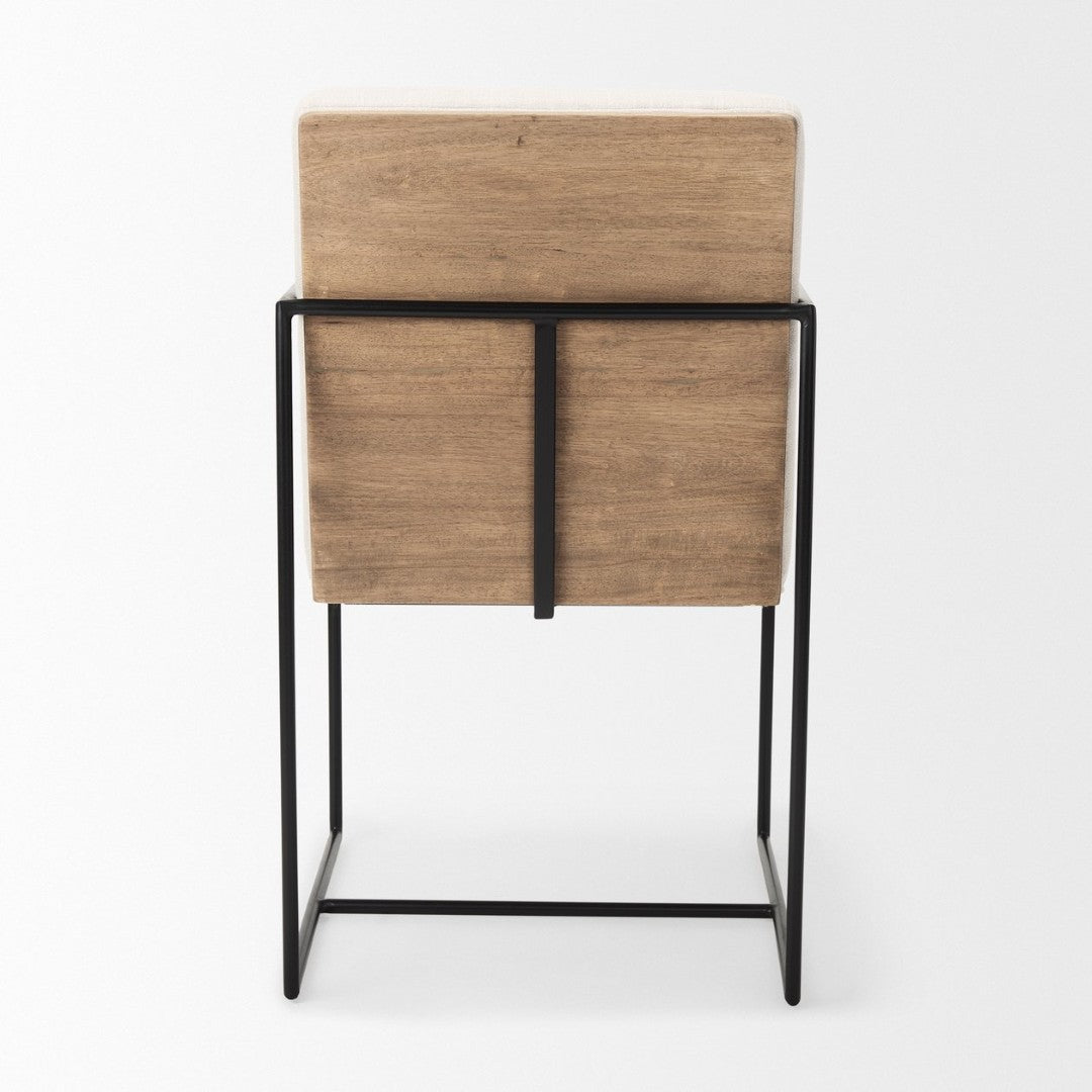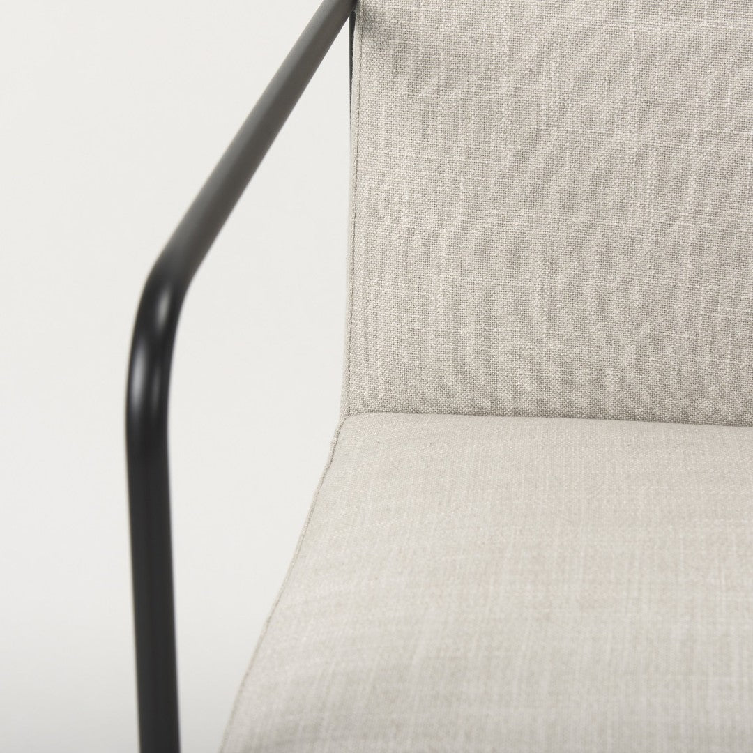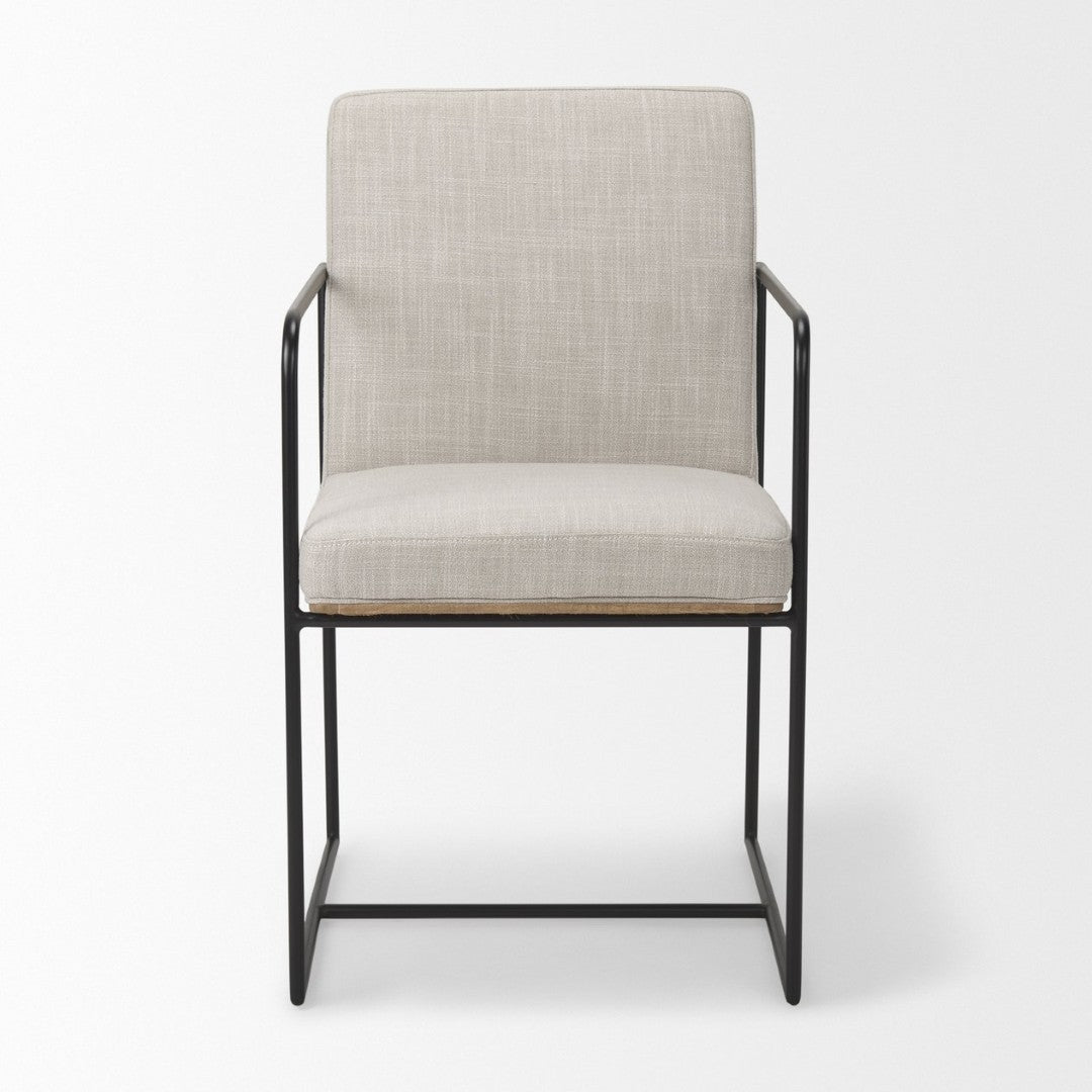 Bring modern structure and warm texture to your dining room with this upholstered armchair. Clean lines and a tailored silhouette are softened by beige linen-blend upholstery and a solid wood back, while a slim matte black metal frame provides durable support. The Stamford chair balances contemporary, industrial, and transitional styles to create an inviting seat that works equally well around the table, at a desk, or as accent seating.