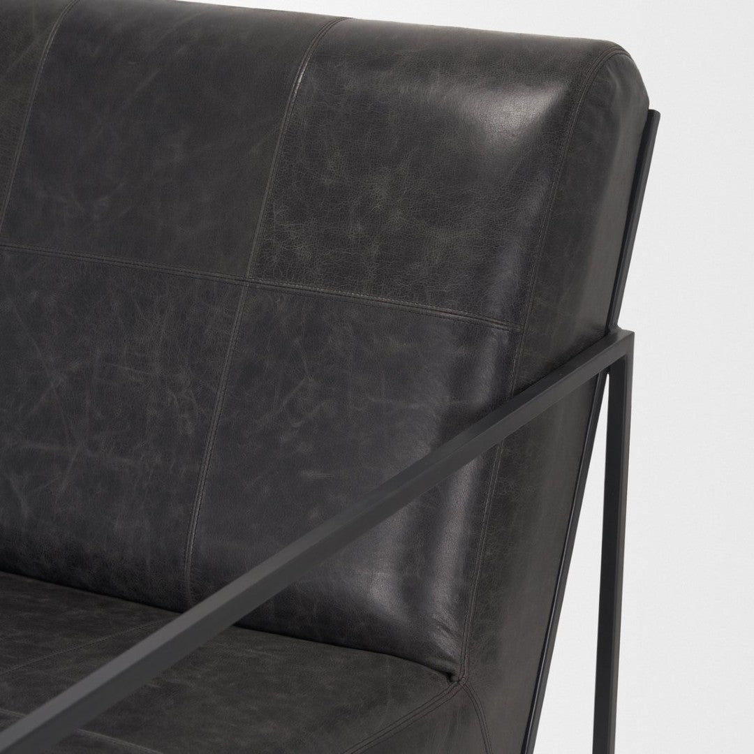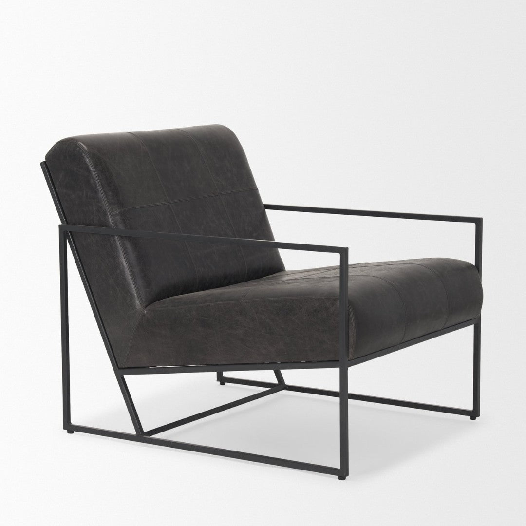 Comfortable and striking, this accent chair blends the warmth of full-grain buffalo leather with a modern gunmetal iron frame to create a refined focal point for living rooms, studies, or offices. The Stratton’s square patchwork upholstery and aged black finish deliver character and tactile appeal while the sturdy metal base provides contemporary contrast and lasting support.