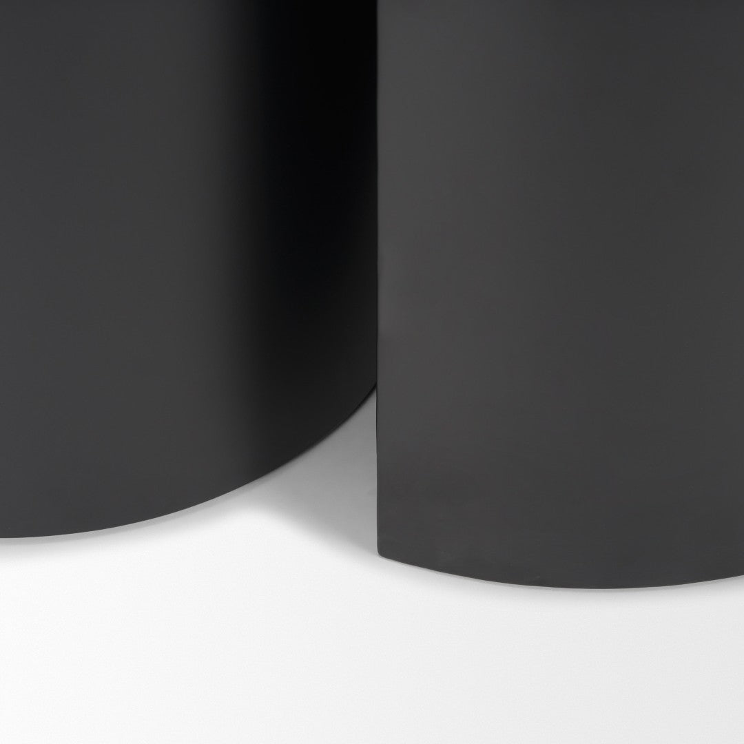 - Design details: Larger table features an open-base, half-circle silhouette while the smaller table uses a solid pillar-style base to create visual contrast and layered interest