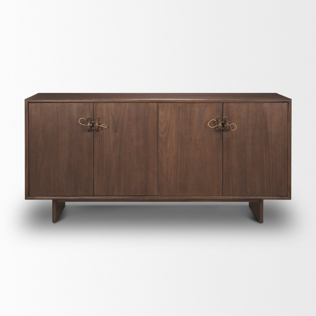 Elevate your dining room or entryway with the Varenna Sideboard — a refined blend of solid elm character and engineered stability, finished in a deep dark-brown stain. Thoughtfully designed for everyday use, it pairs classic wood tones and tactile rope-style handles with practical storage to keep servingware and linens organized and accessible.