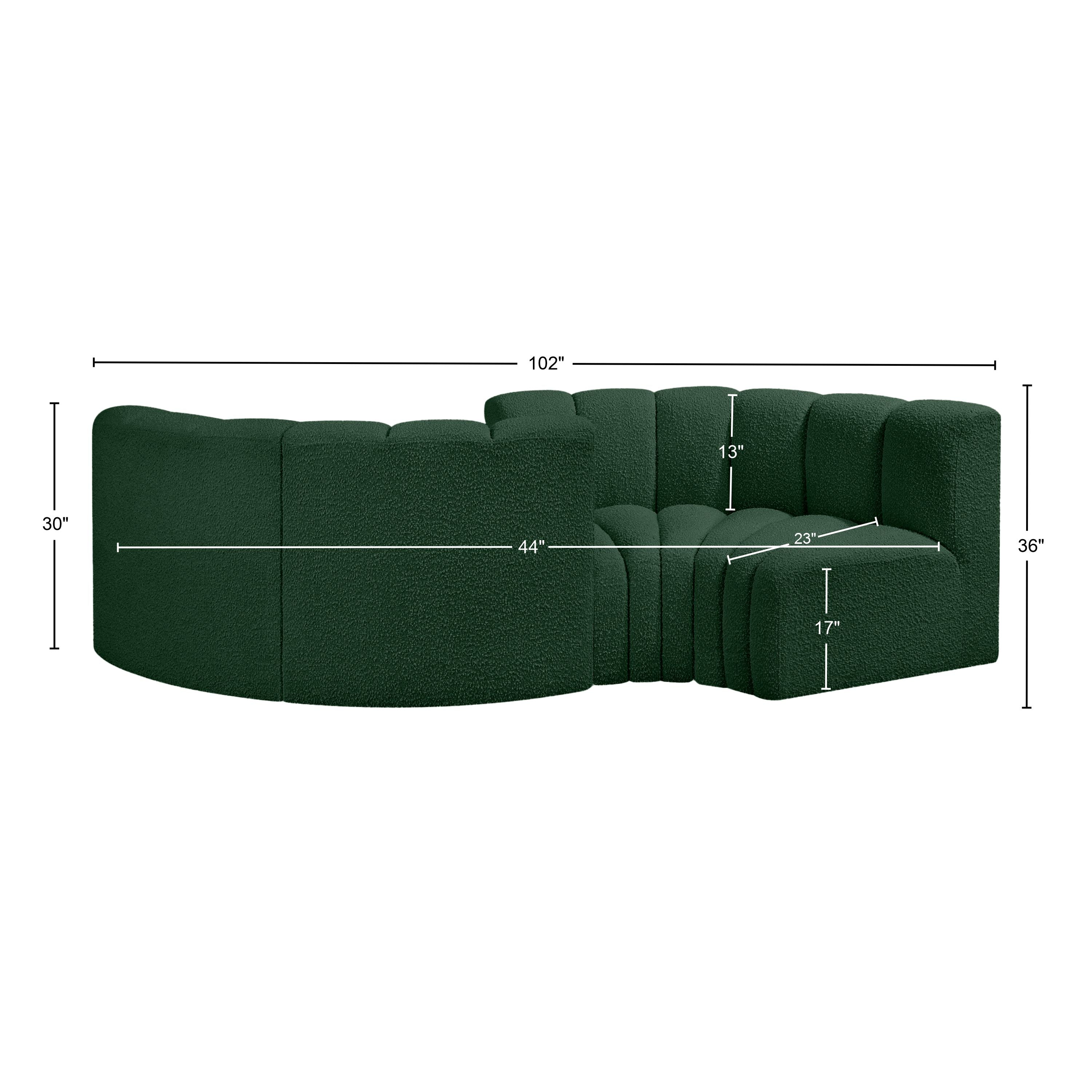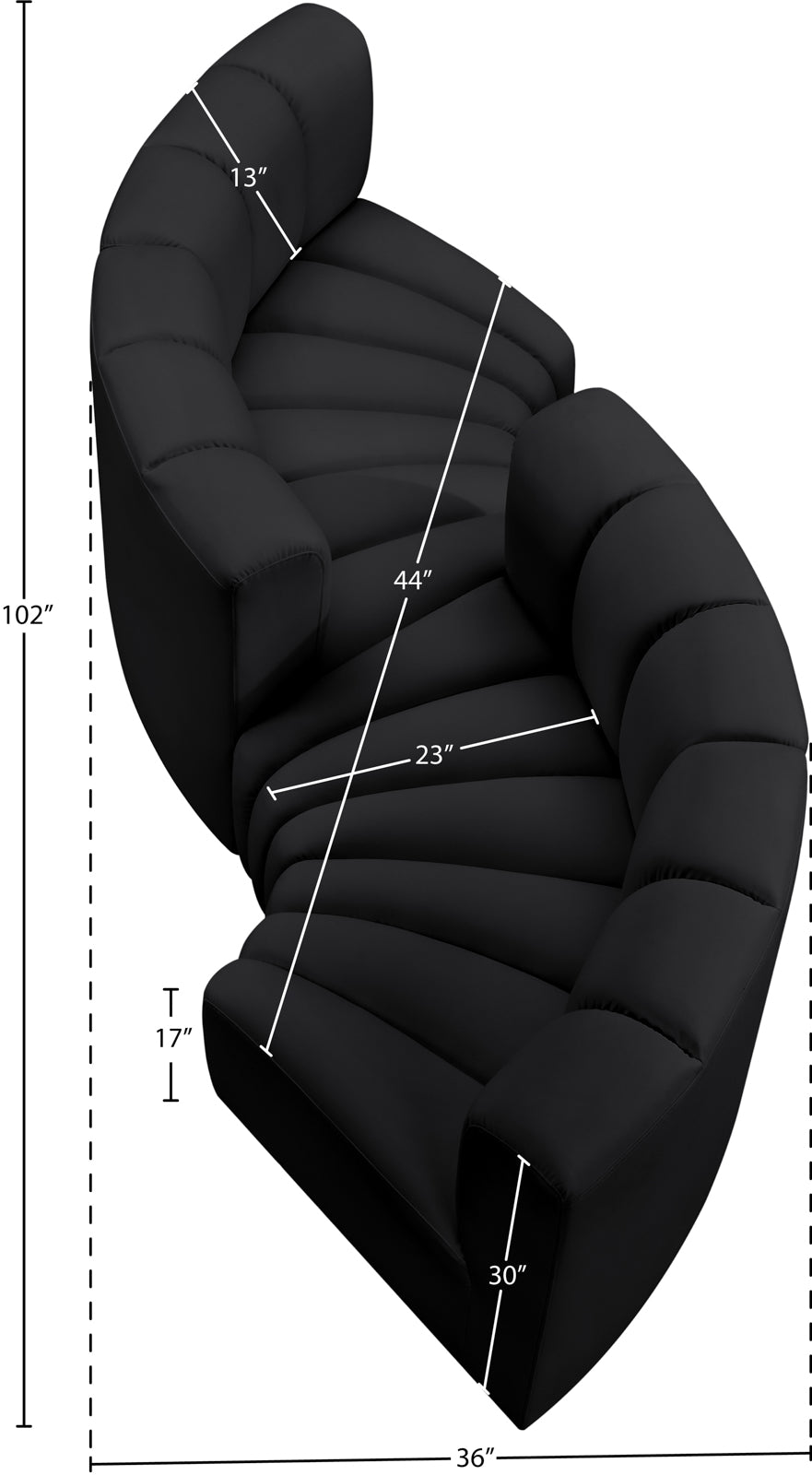 - Dimensions: 101Black-S4F Arc Black Vegan Leather Modular Sofa - 102" W x 36" D x 30" H