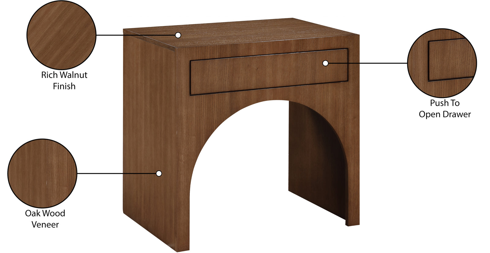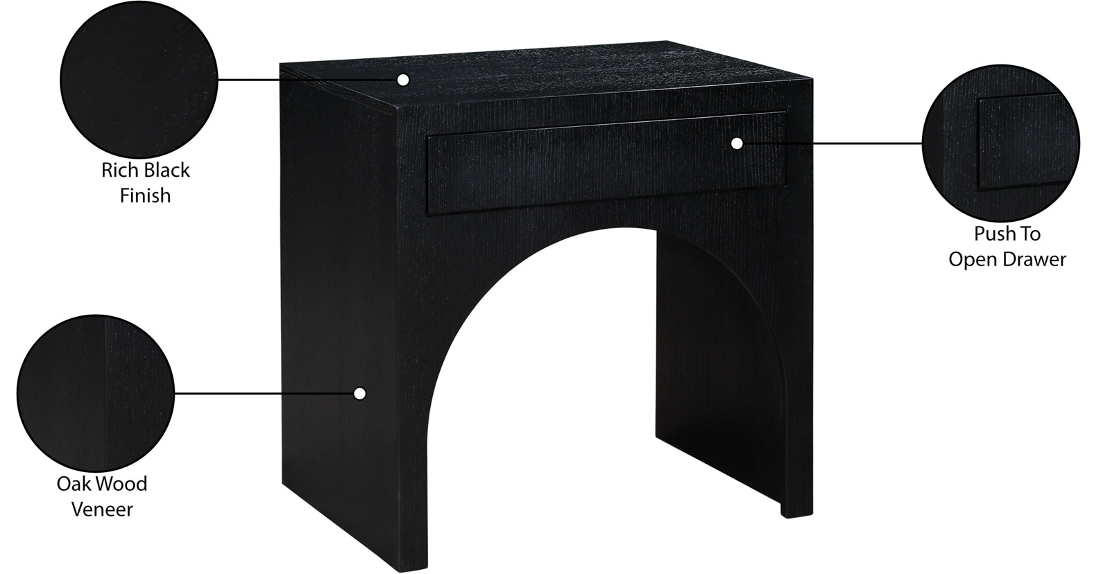 - Material: 388Black-NS August Black Night Stand - Oak Wood Veneer / MDF with Black