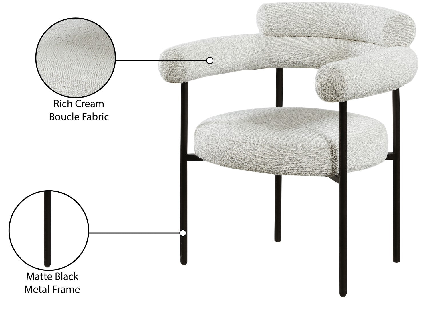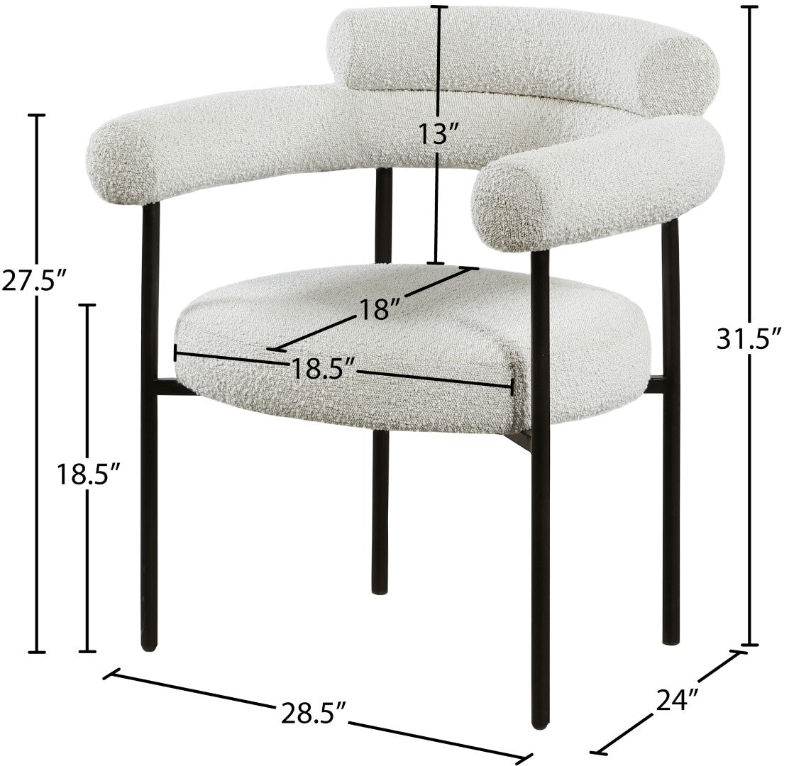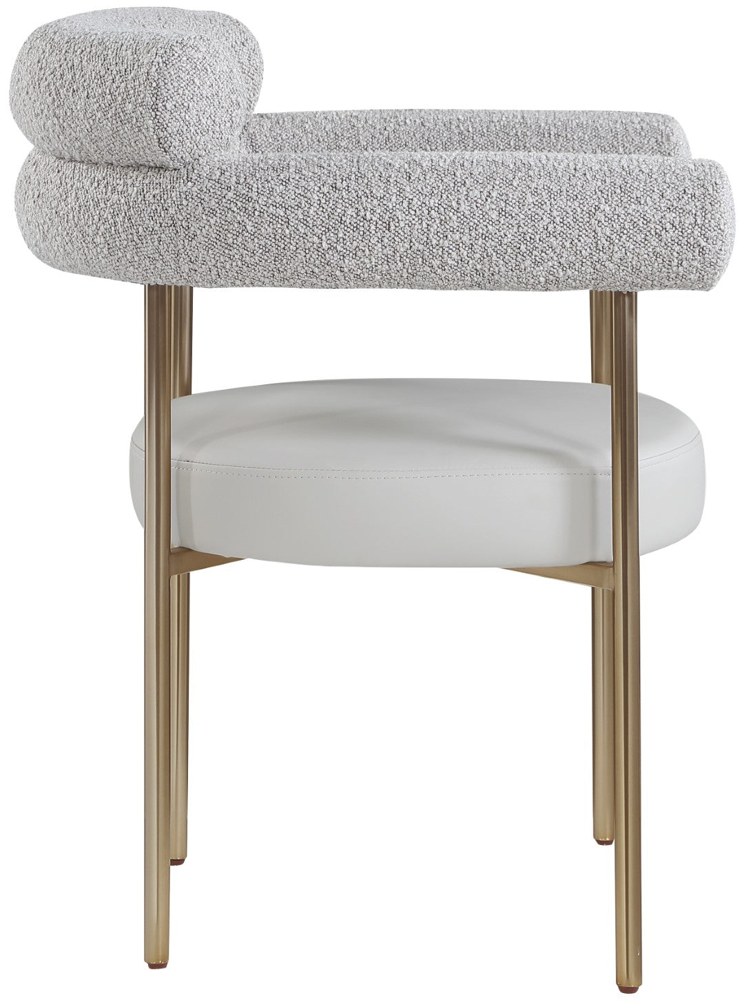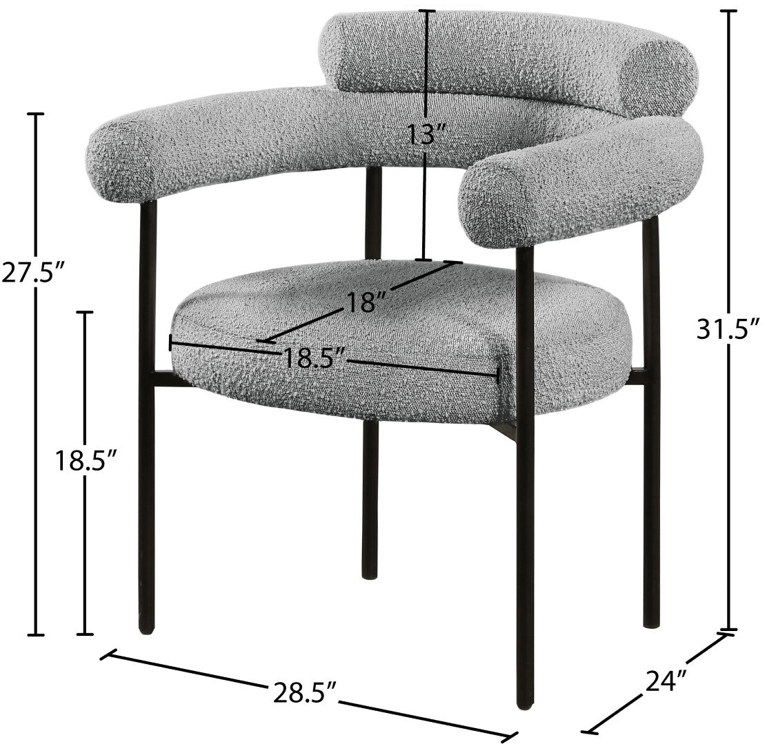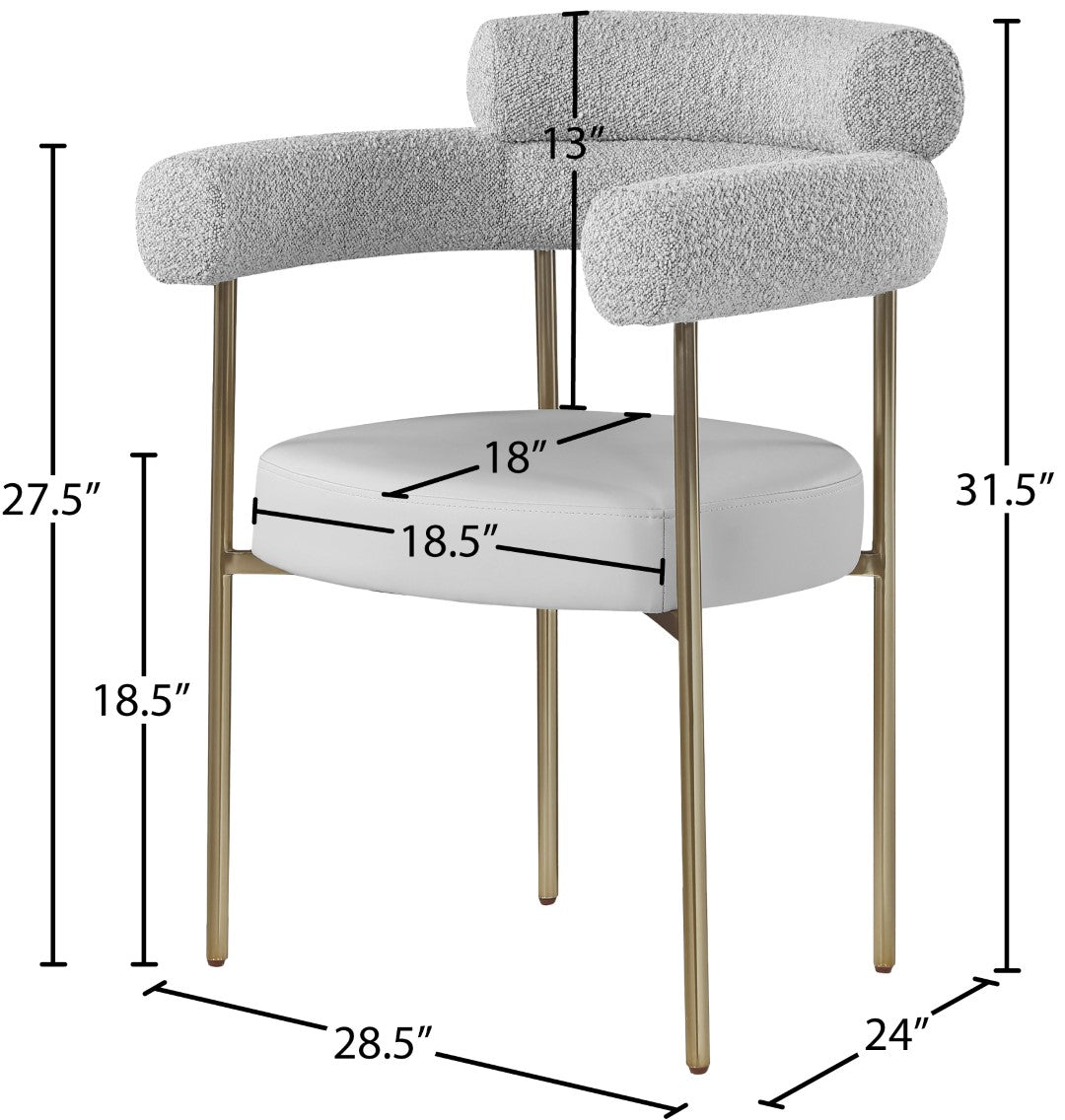 - Material: Boucle Fabric / Faux Leather / Iron / Foam