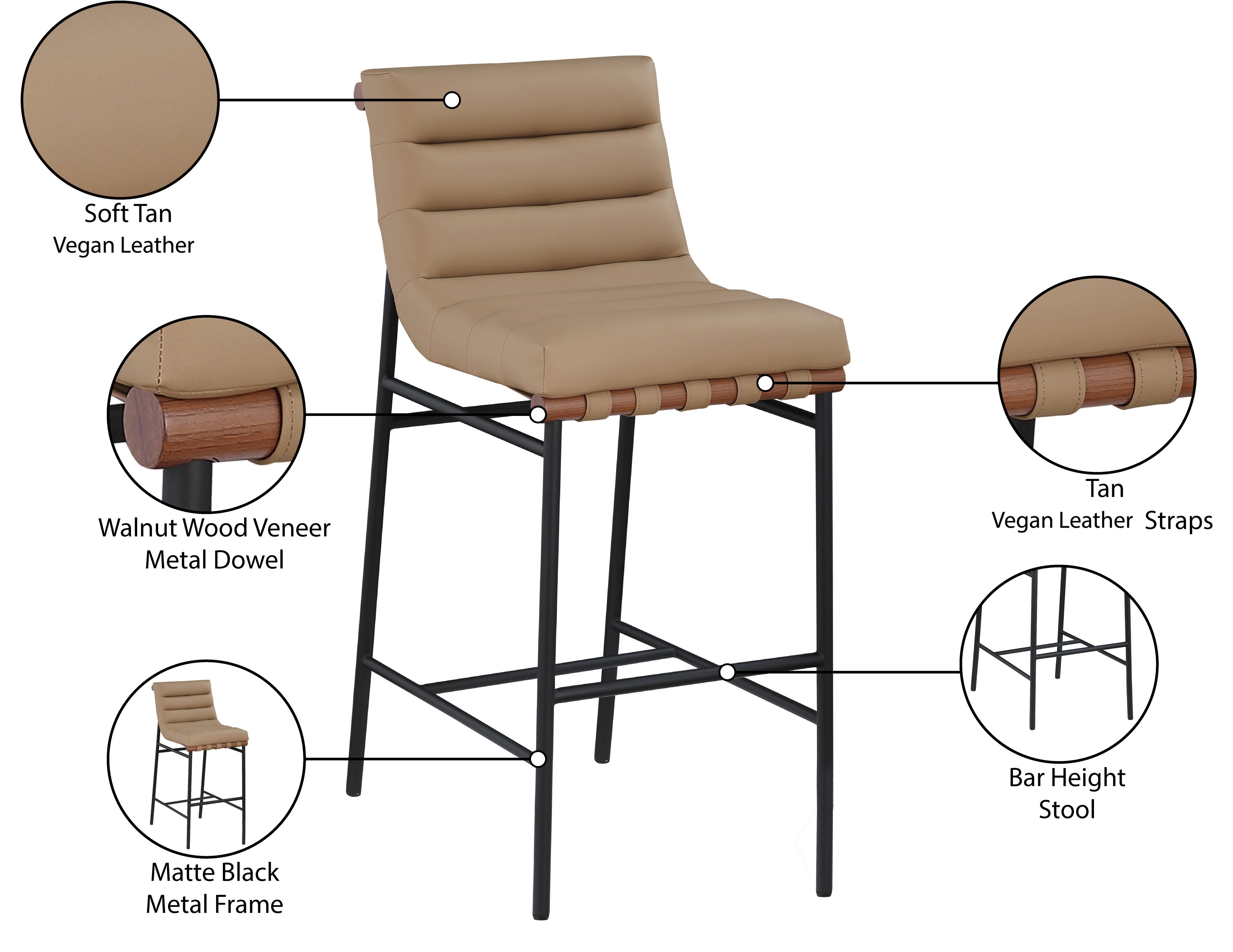 - Material: 800Cream-C Burke Cream Vegan Leather Bar Stool - Vegan Leather / Iron / Engineered Wood / Foam with Black Powder Coating