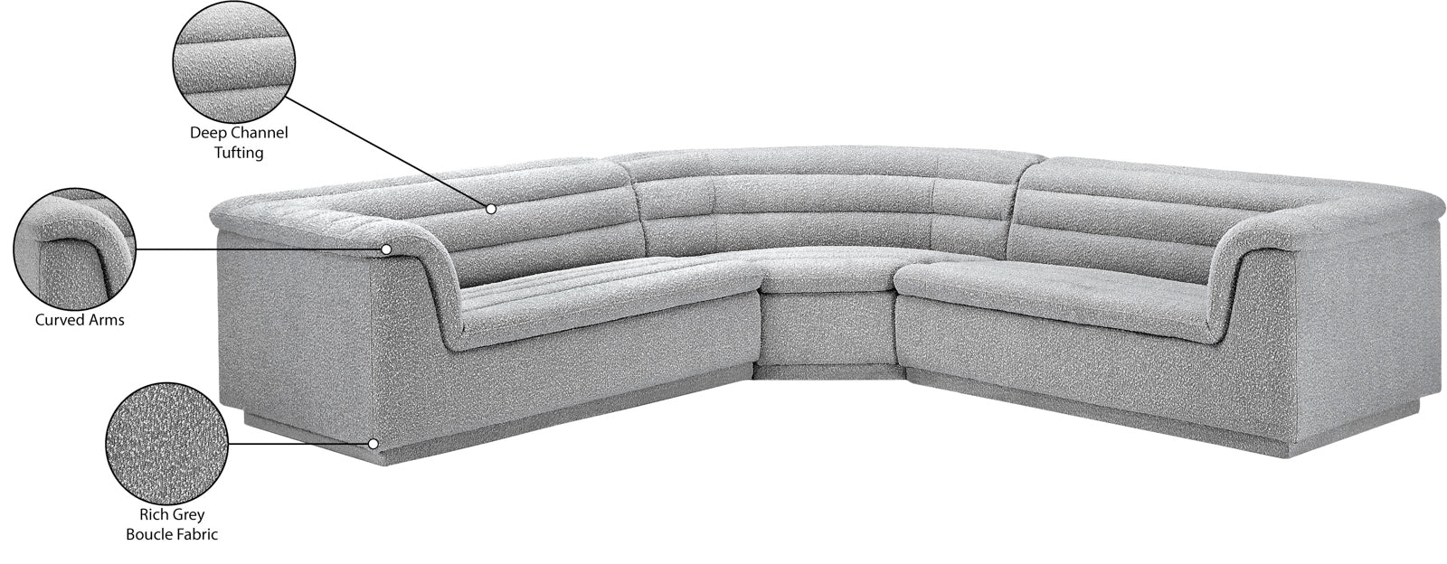 - Color: 193Black-Sectional Cascade Black Boucle Fabric Modular Sectional - Black Boucle Fabric