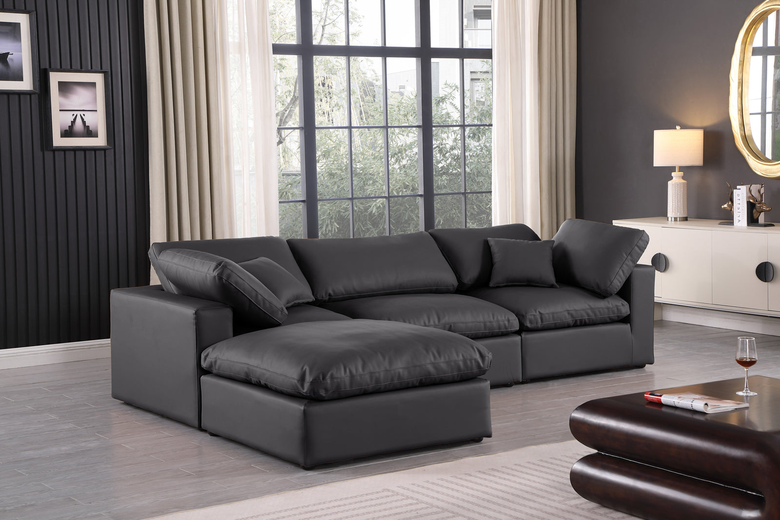 - Color: 188Black-Sec4A Comfy Black Vegan Leather Modular Sectional - Black Vegan Leather