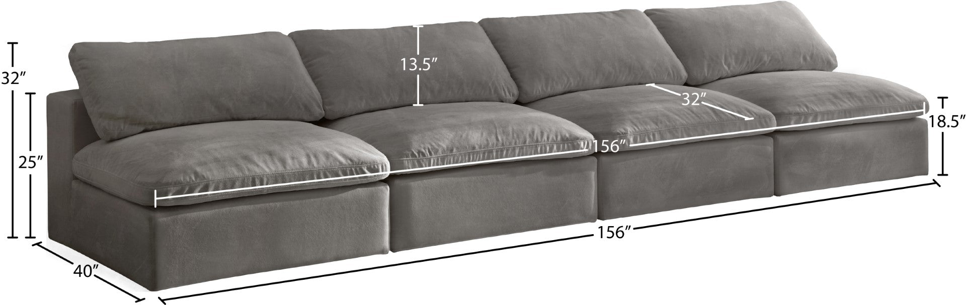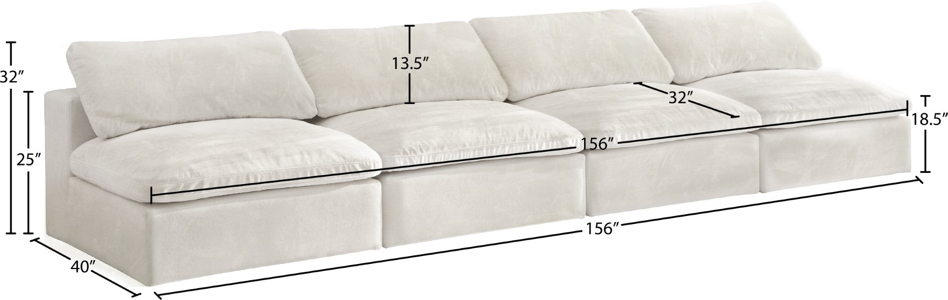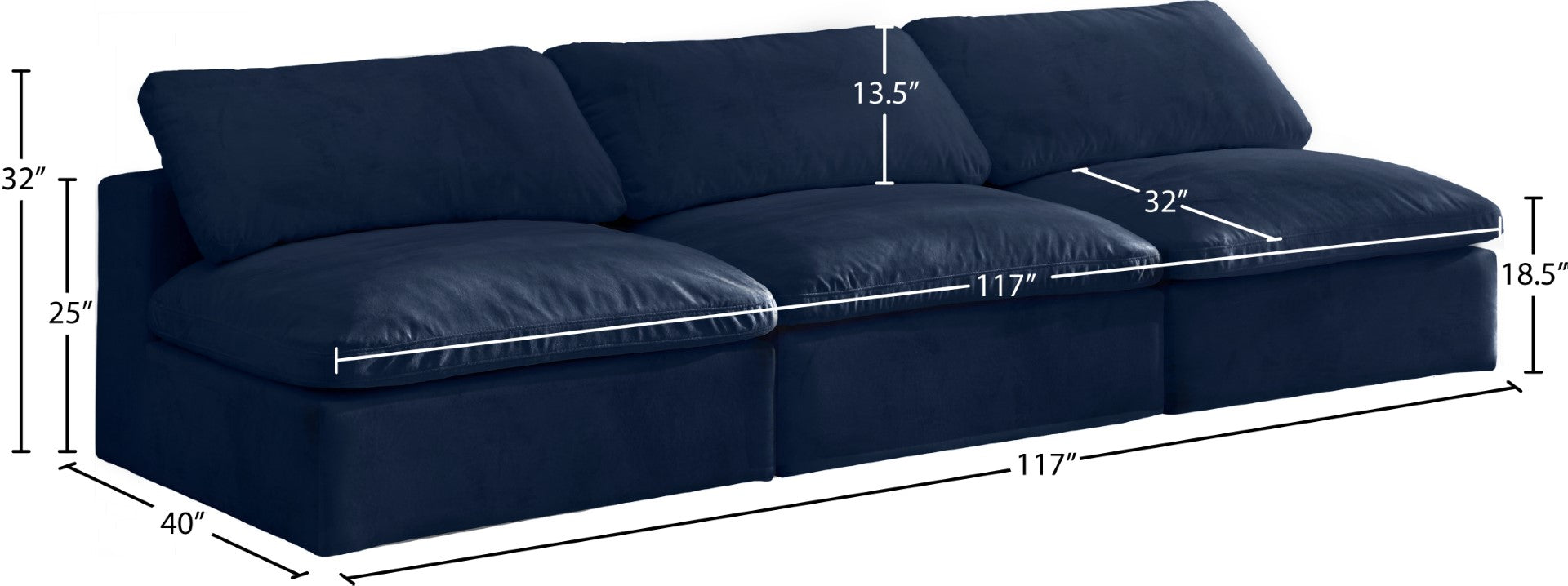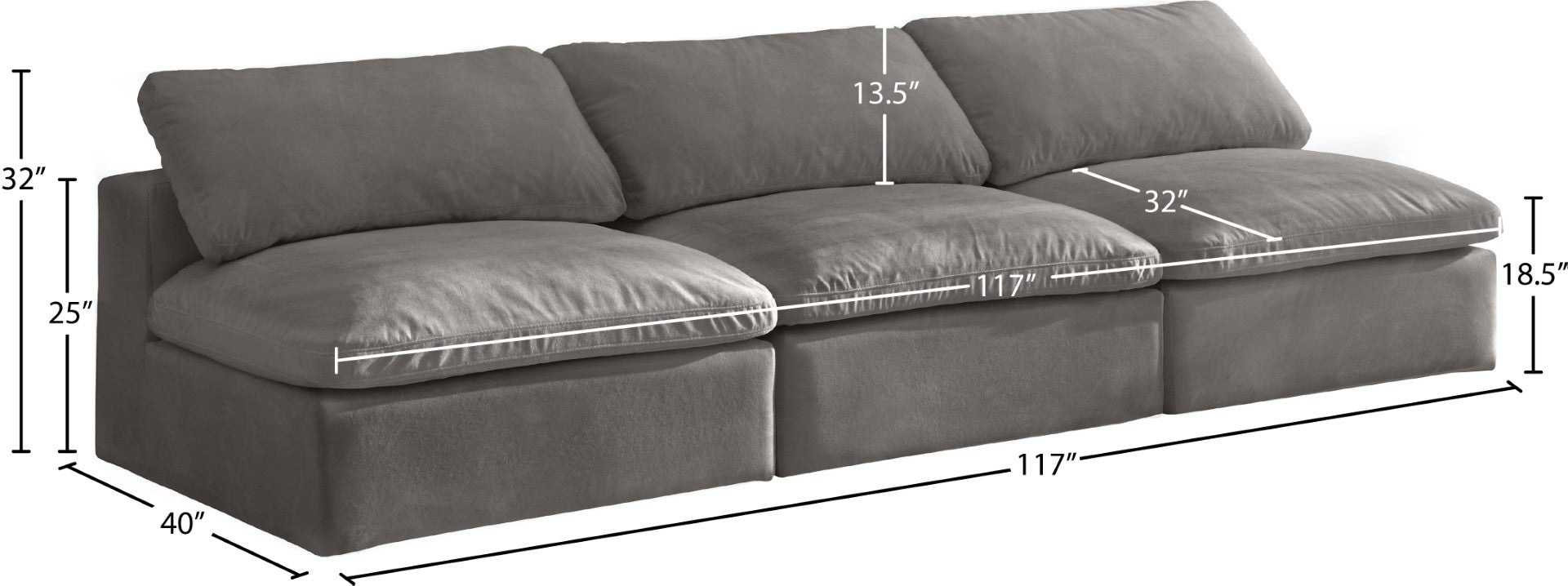 - Dimensions: 117" W x 40" D x 32" H
