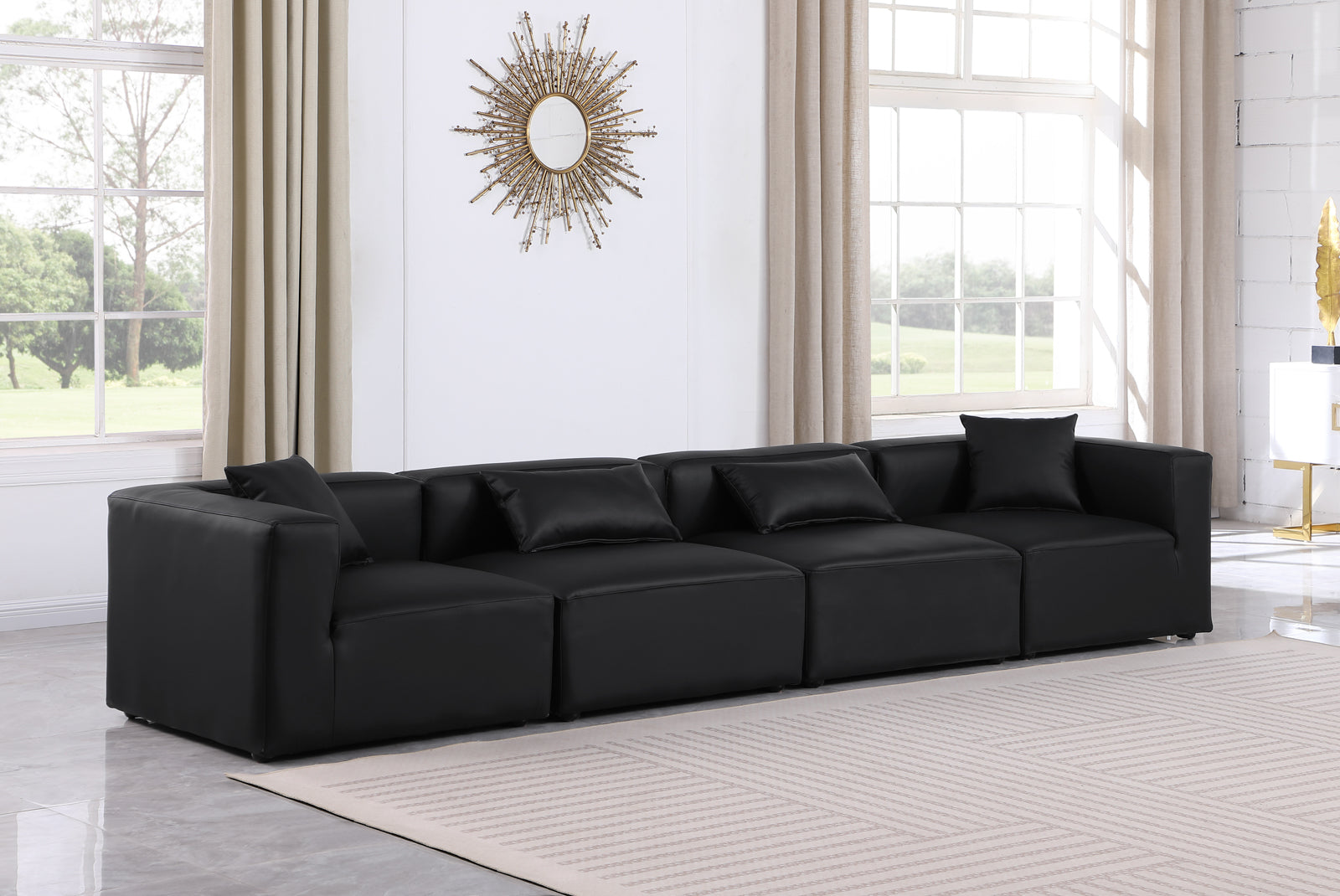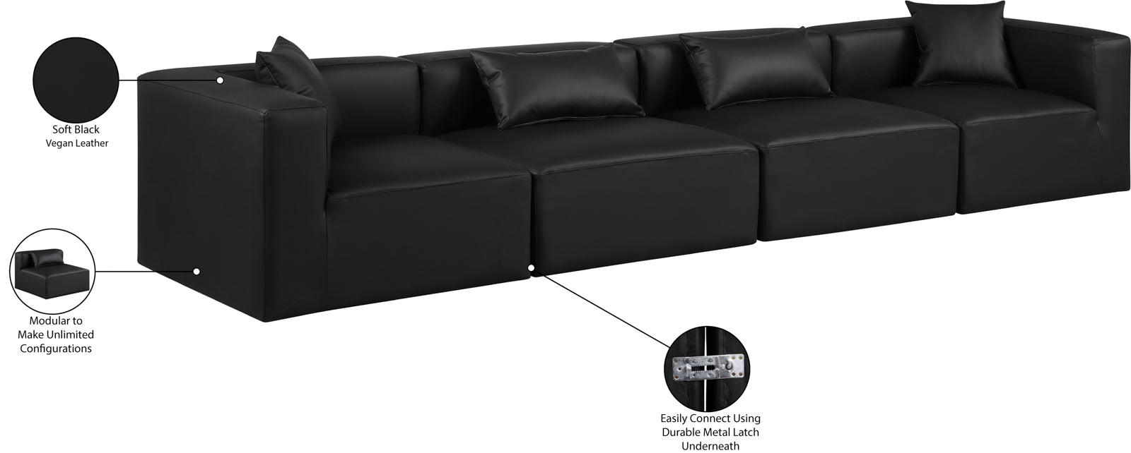 - Material: 668Black-S144B Cube Black Vegan Leather Modular Sofa - Vegan Leather / Engineered Wood / Foam