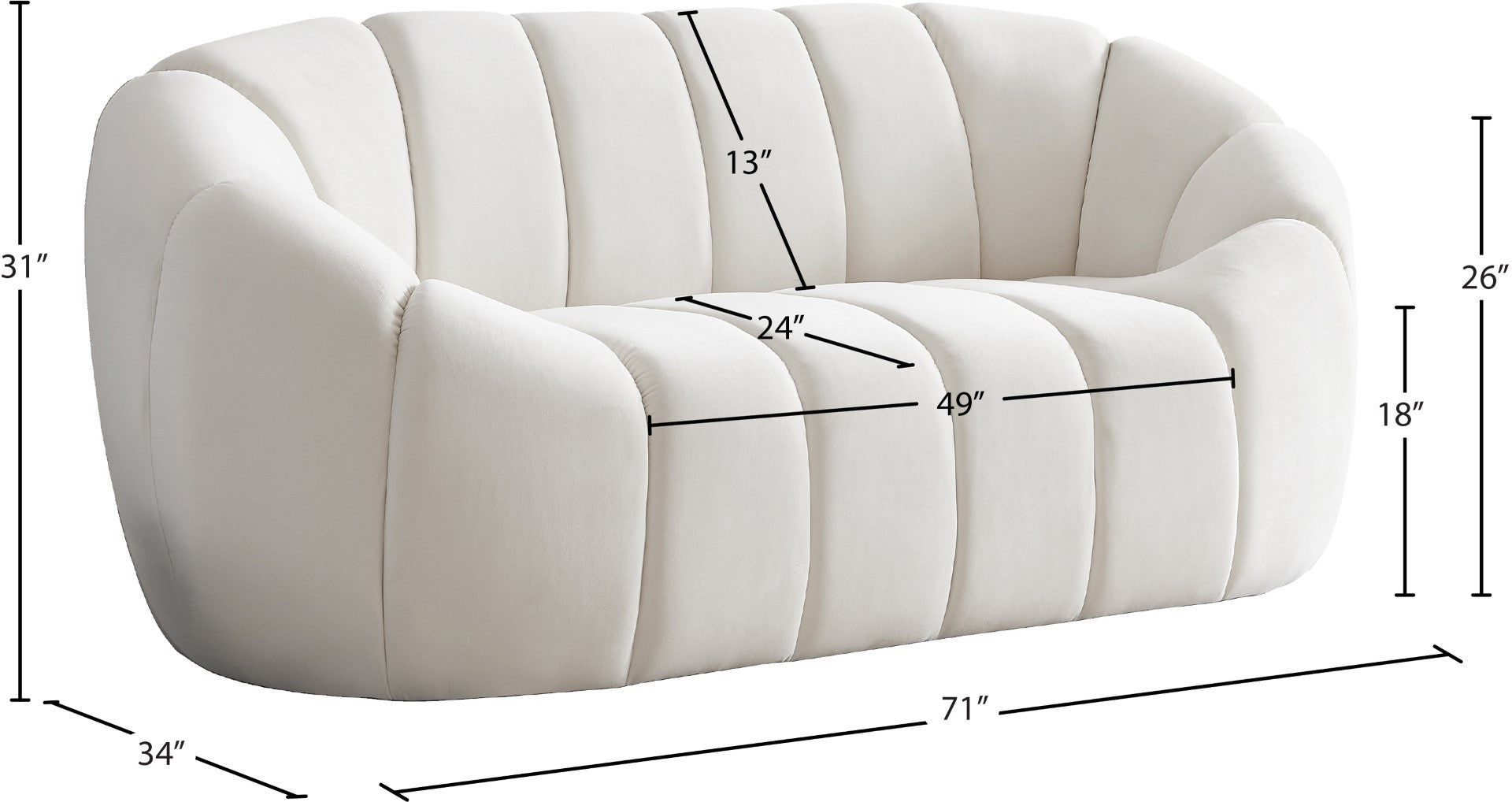 - Dimensions: 71" W x 34" D x 31" H