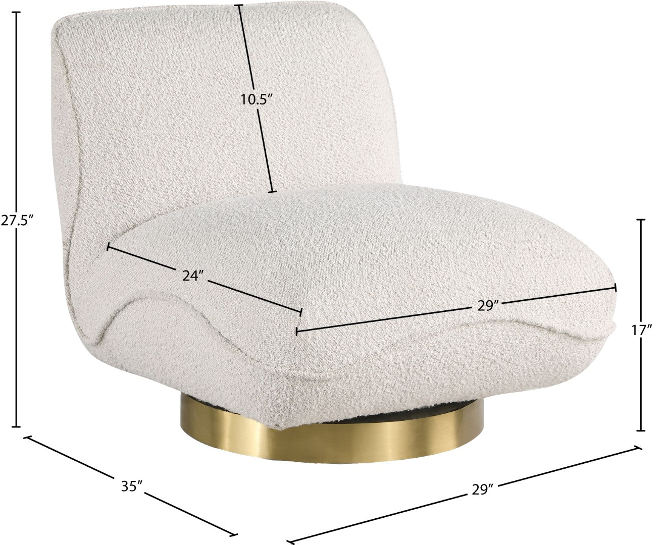 - Material: Boucle Fabric / Eucalyptus Wood / Stainless Steel / Foam