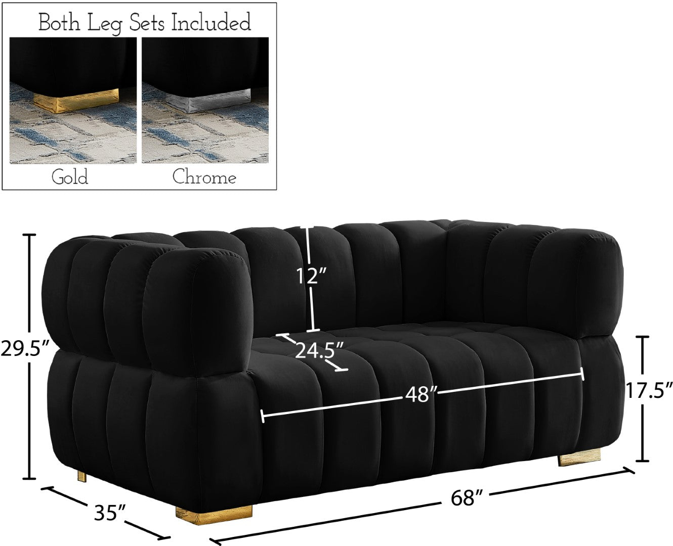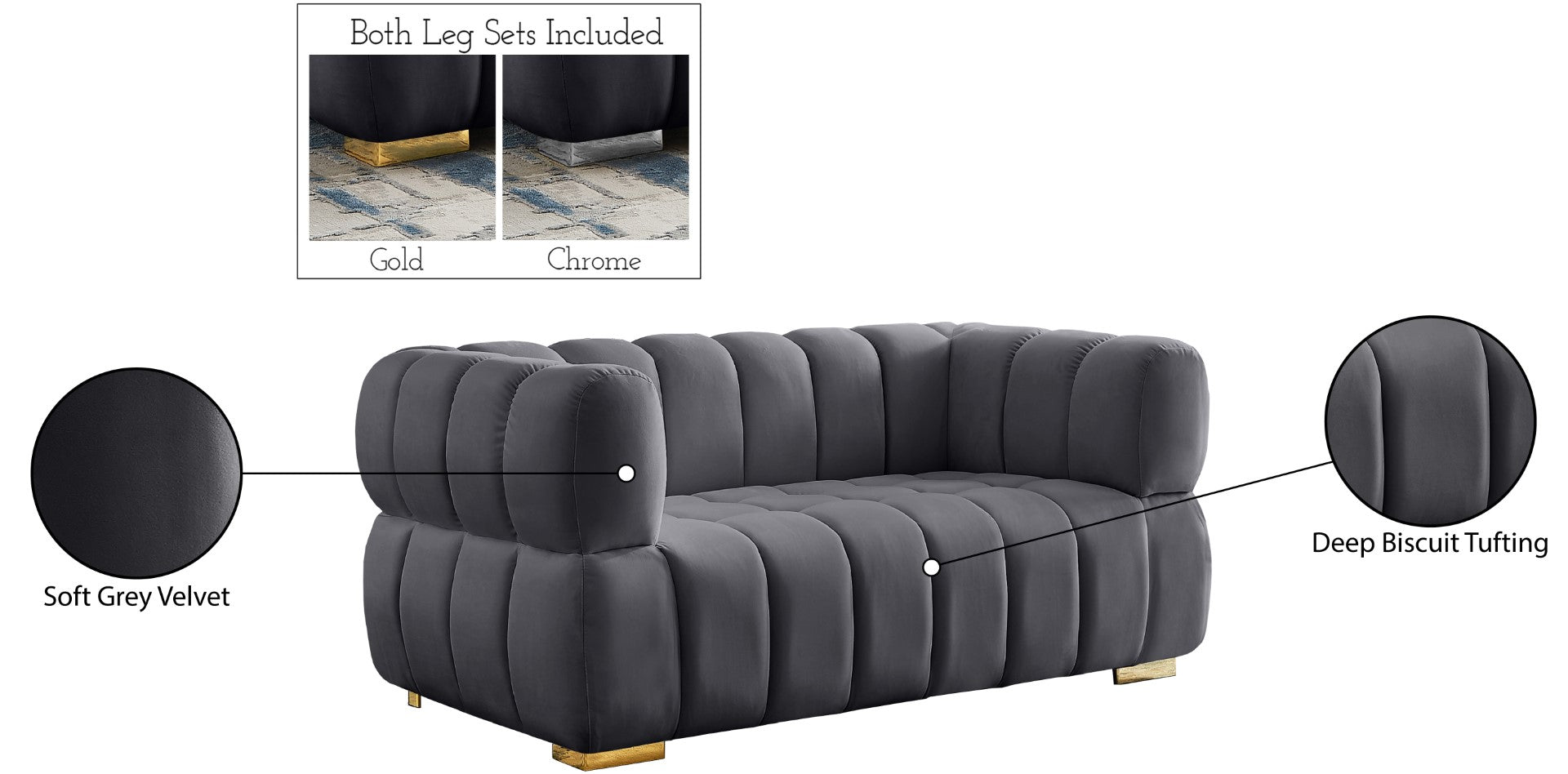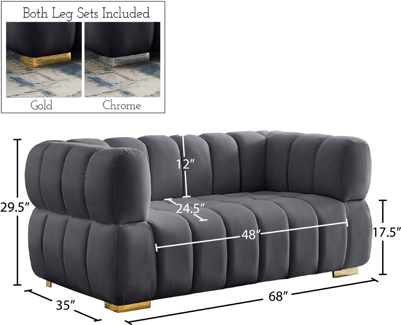 - Material: Velvet / Engineered Wood / Metal / Foam